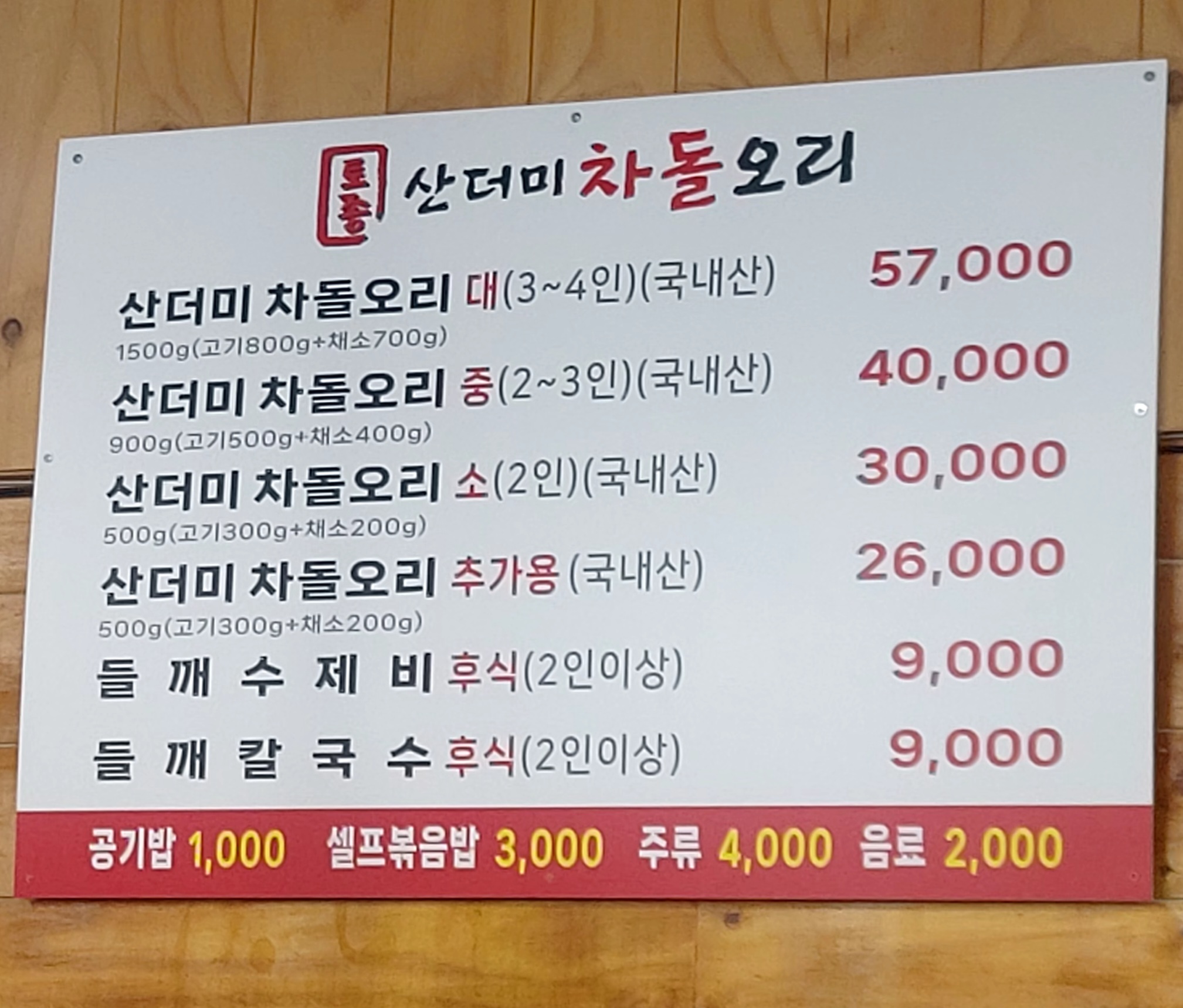 메뉴는 산더미 차돌오리 소자 시켰어요.
