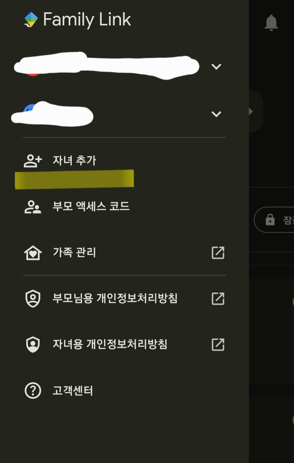 물론 자녀의 구글 계정이 먼저 등록되어 있어야 합니다.