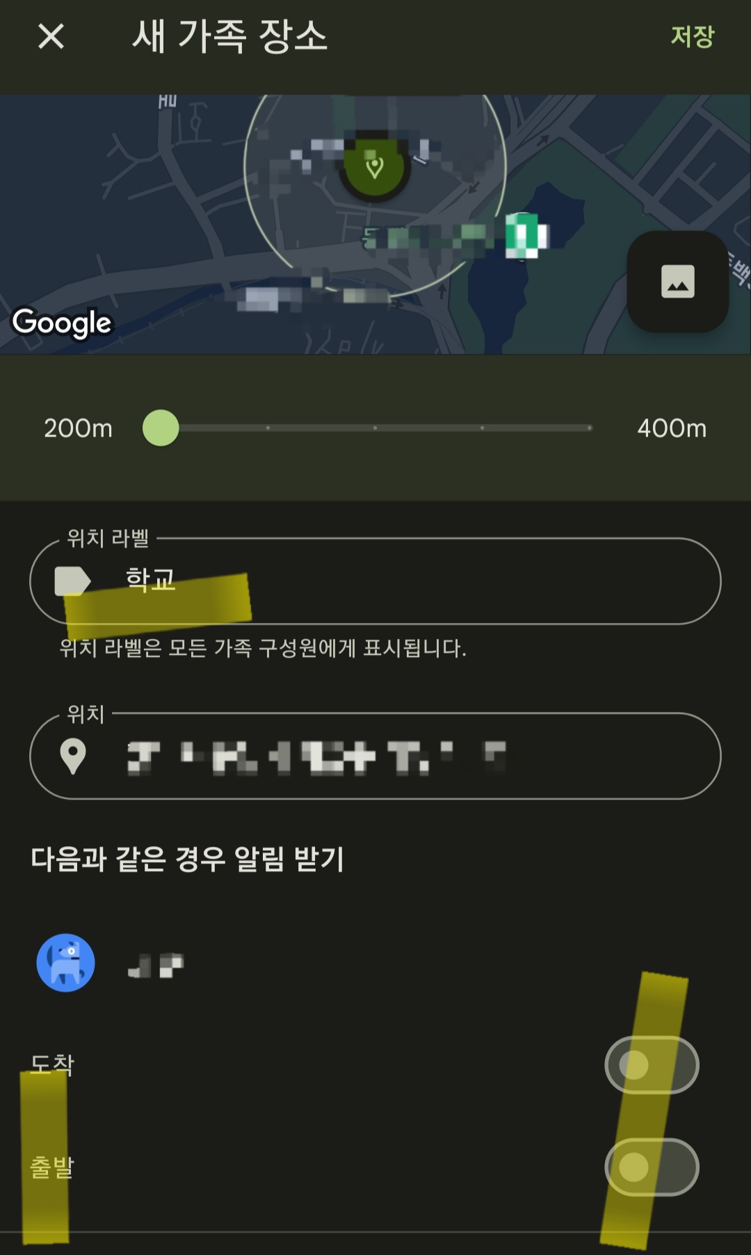 자녀가 자주 가는 장소가 있다면 '위치 라벨'을 저장해서 자녀가 도착, 출발 시 알람이 오게끔 설정하실 수도 있습니다.