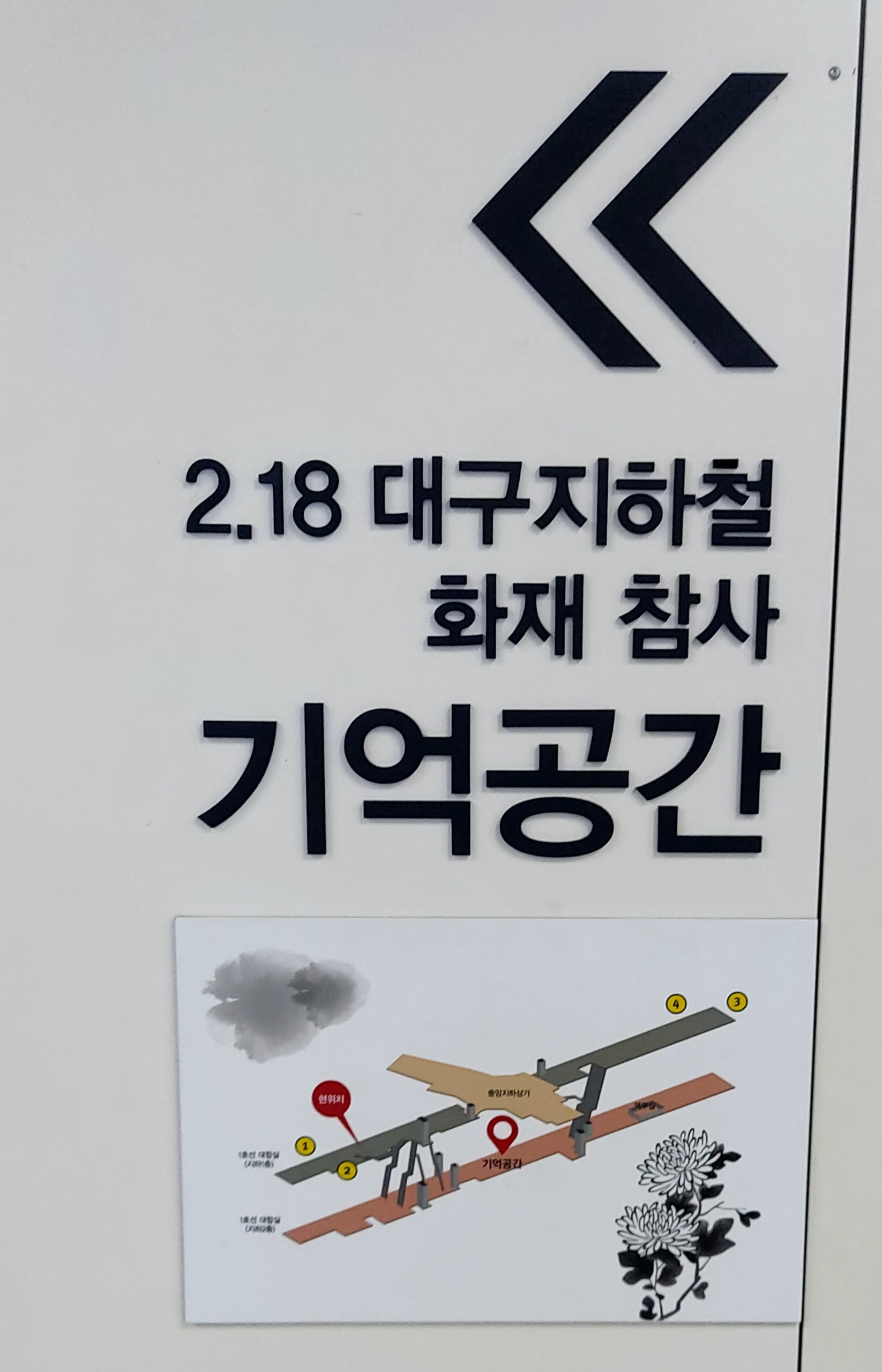 내렸더니 역사 내에 대구 지하철 화재 참사 추모 현장이 보이더라고요.