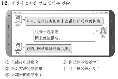 ①유선으로만 신청할 수 있어 ② 나 이미 배울 필요없어 ③ 신청 방법 완전 간단해 ④ 온라인 신청 이미 늦었어 ⑤취미반 과정 종료되었어