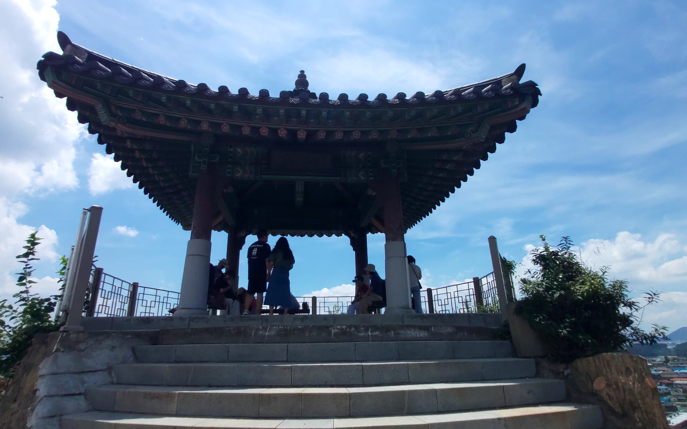 노적봉 예술공원에 내려서 올라가다보면 이순신 장군 동상이 나오고, 더 오르면 나혼산에서 팜유가 쑥굴레 사서 올랐던 정자가 나옵니다.