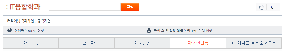 학과 개요를 살펴보셨으면 옆 카테고리에서 개설 대학이나 취업률, 임금 등이 포함된 학과전망을 보실 수 있습니다.