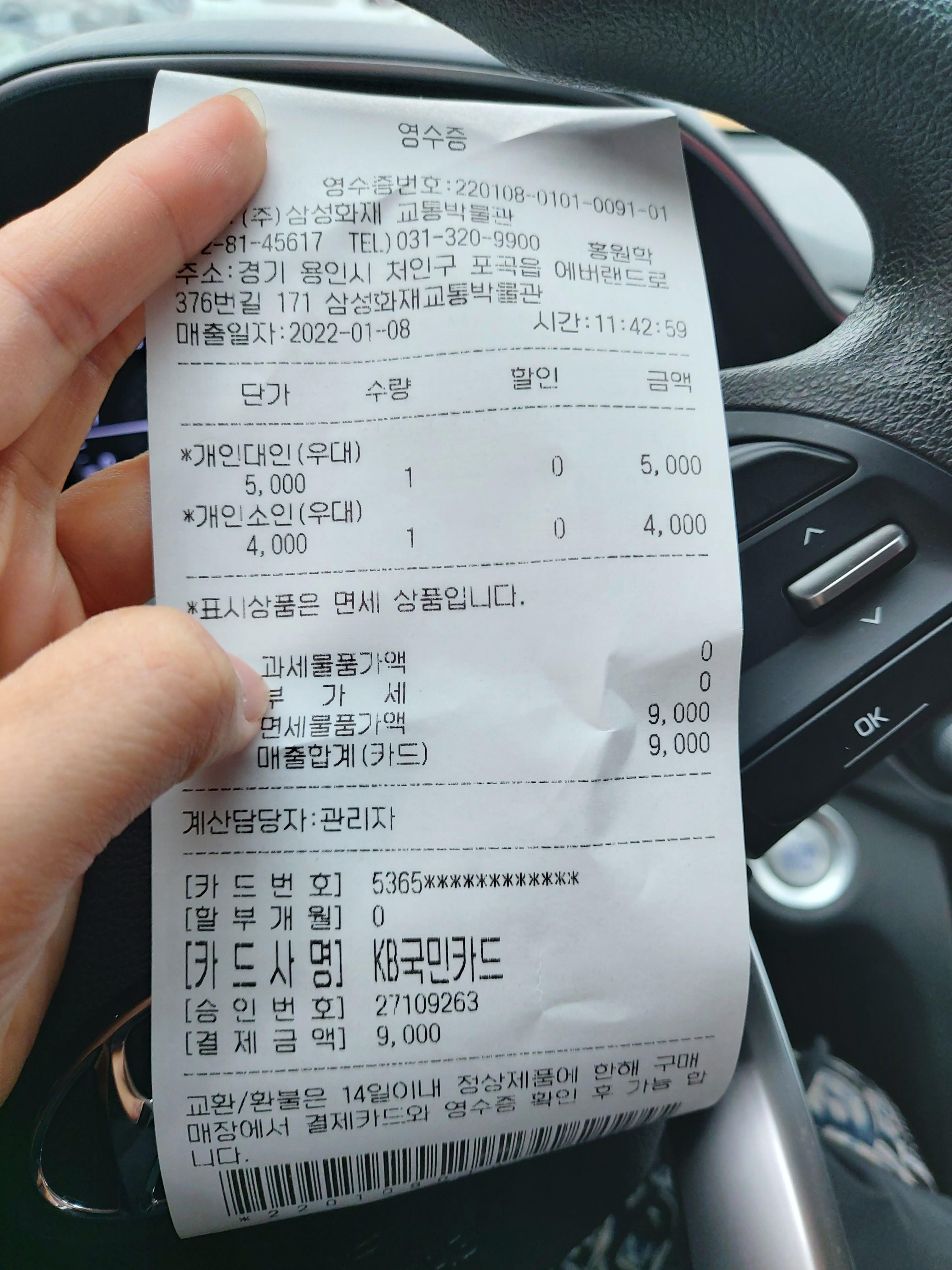 시승 프로그램 참가를 위해 줄을 서있으면 직원 분이 영수증을 나눠줍니다. 그 영수증을 받으면 탈 수 있다는 얘기니깐 일단 안심하시면 됩니다. 저희도 그날 늦게 가서 못타는 줄 알았는데 운좋게 거의 마지막으로 탔던 것 같아요.