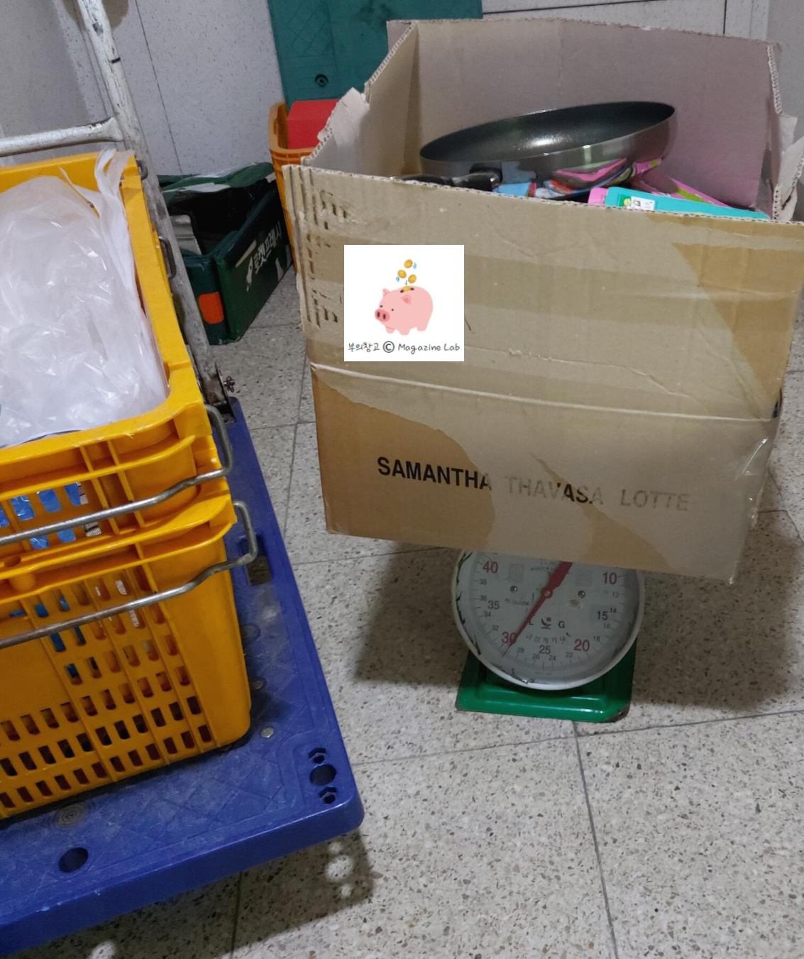 헌 옷을 모두 저울에 달아보니 14KG가 나오더라고요. 20KG가 안되서, 단가가 깎였어요.