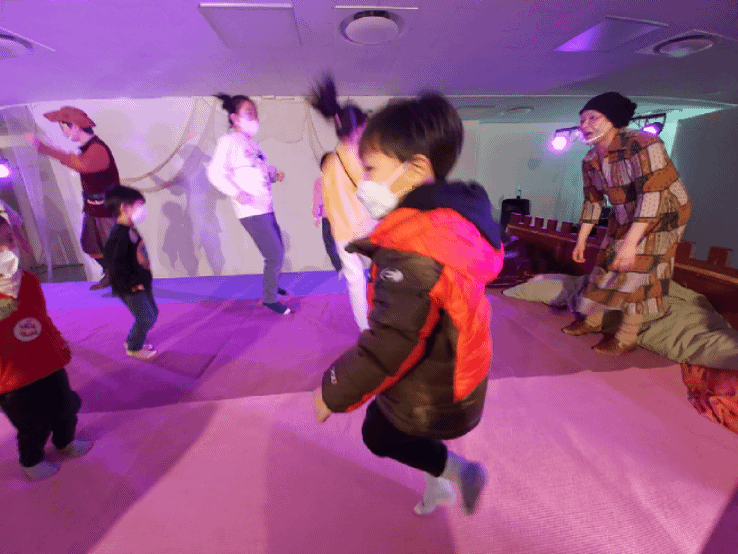 이 공연이 무엇보다 좋았던 것은 아이들이 체험할 거리가 중간에 배치되어 있는 것입니다.