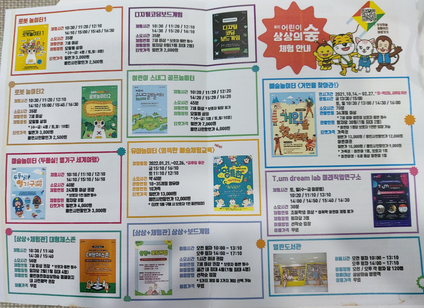 - 티켓가격: [가족권] 13000원(용인시민할인가 12000원) [어린이권] 10000원(용인시민할인가 9000원)