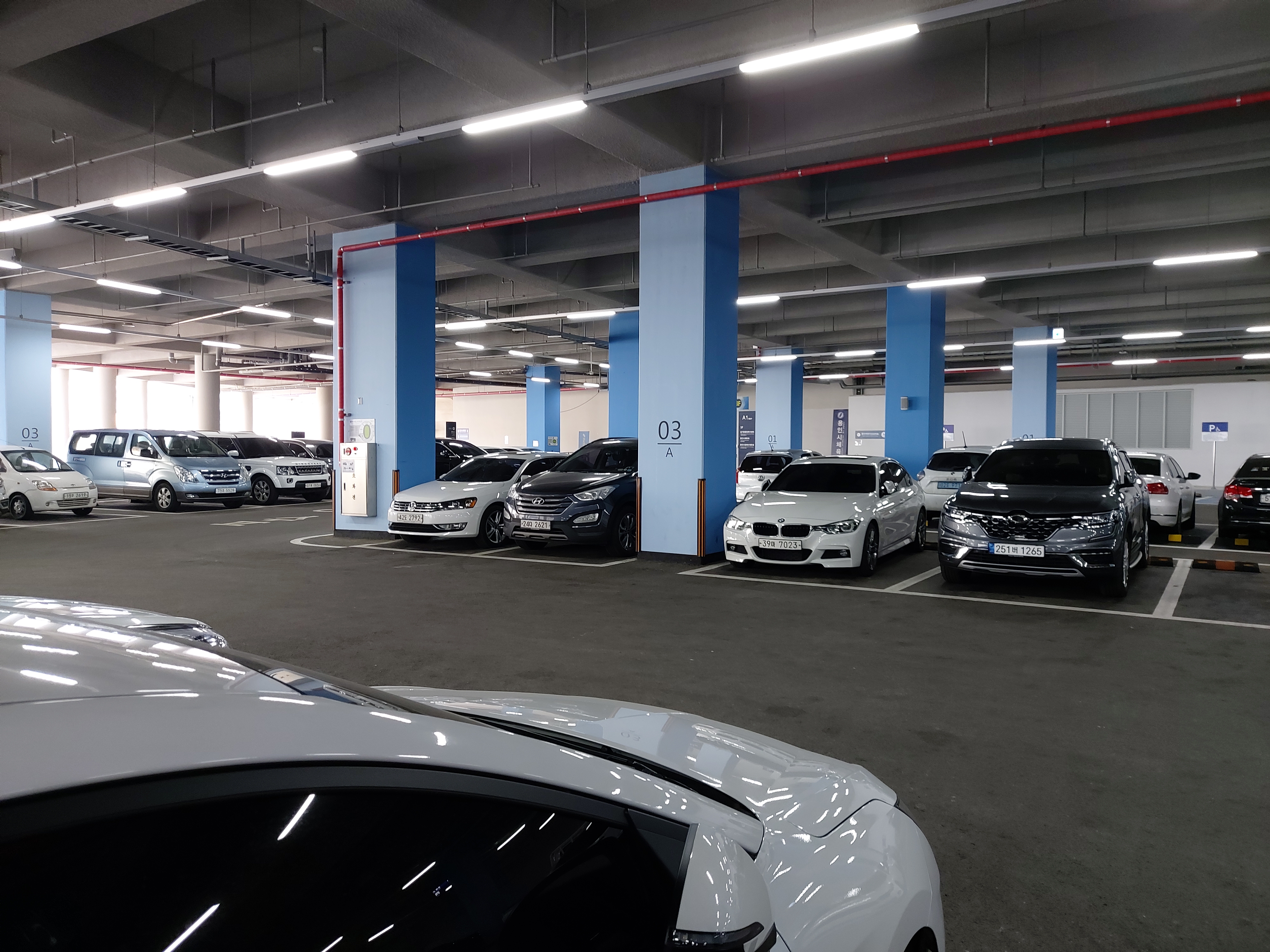 주차 공간은 보시다시피 아주 널찍하고 무료입니다.