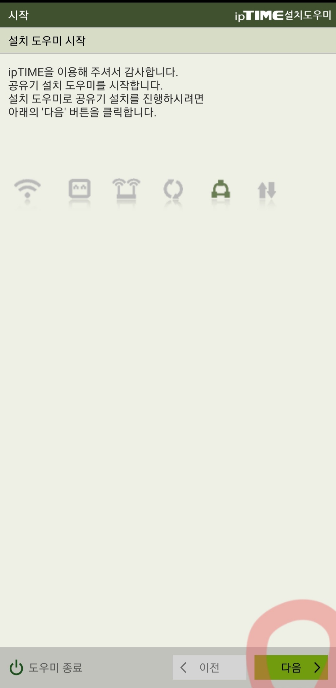 ①구글스토어에서 'iptime설치도우미' 어플을 다운 받으세요.