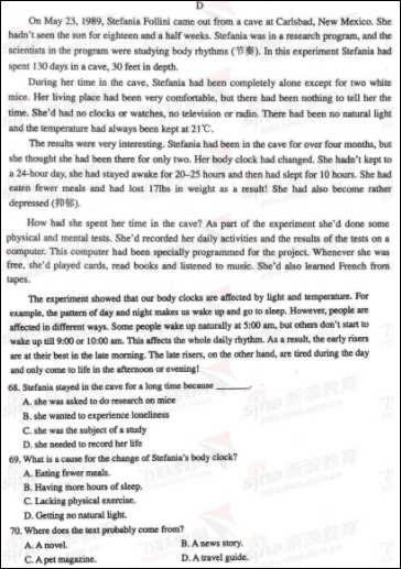 가오카오 문제 한 번 살펴볼까요? 2021 영어 문제라고 하는데, 재미삼아 보세요.