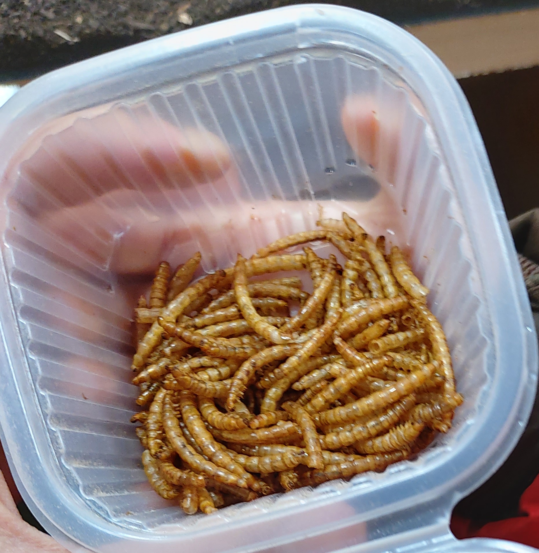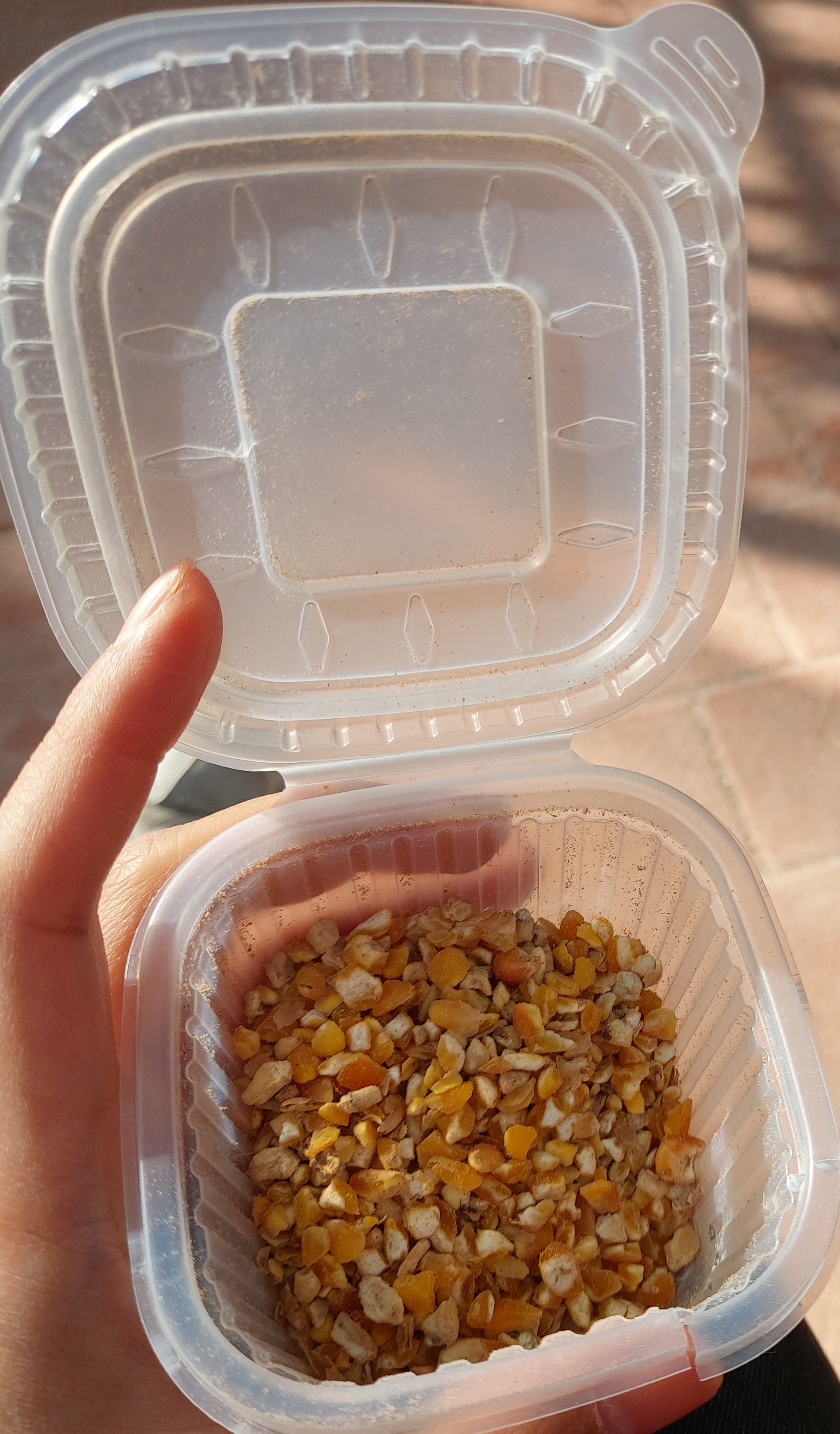 옥수수, 당근, 그리고 아래 건조 밀웜 3가지를 주십니다. 건조 밀웜은 애벌레를 튀긴거라고 우리가 먹어도 된다고 하시던데, 저는 동물들에게 양보하기로 했습니다.