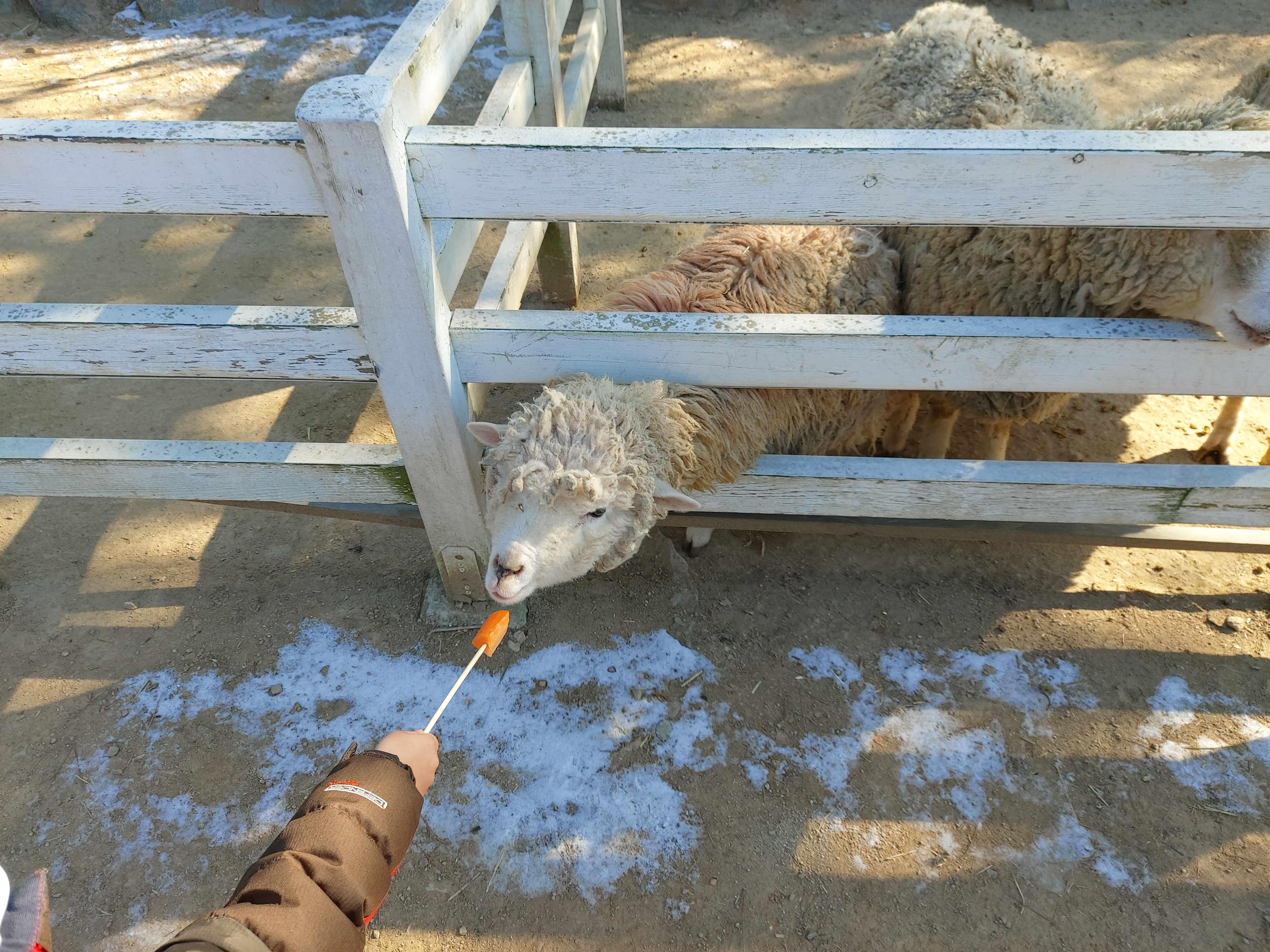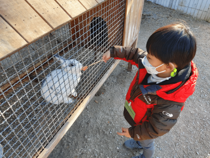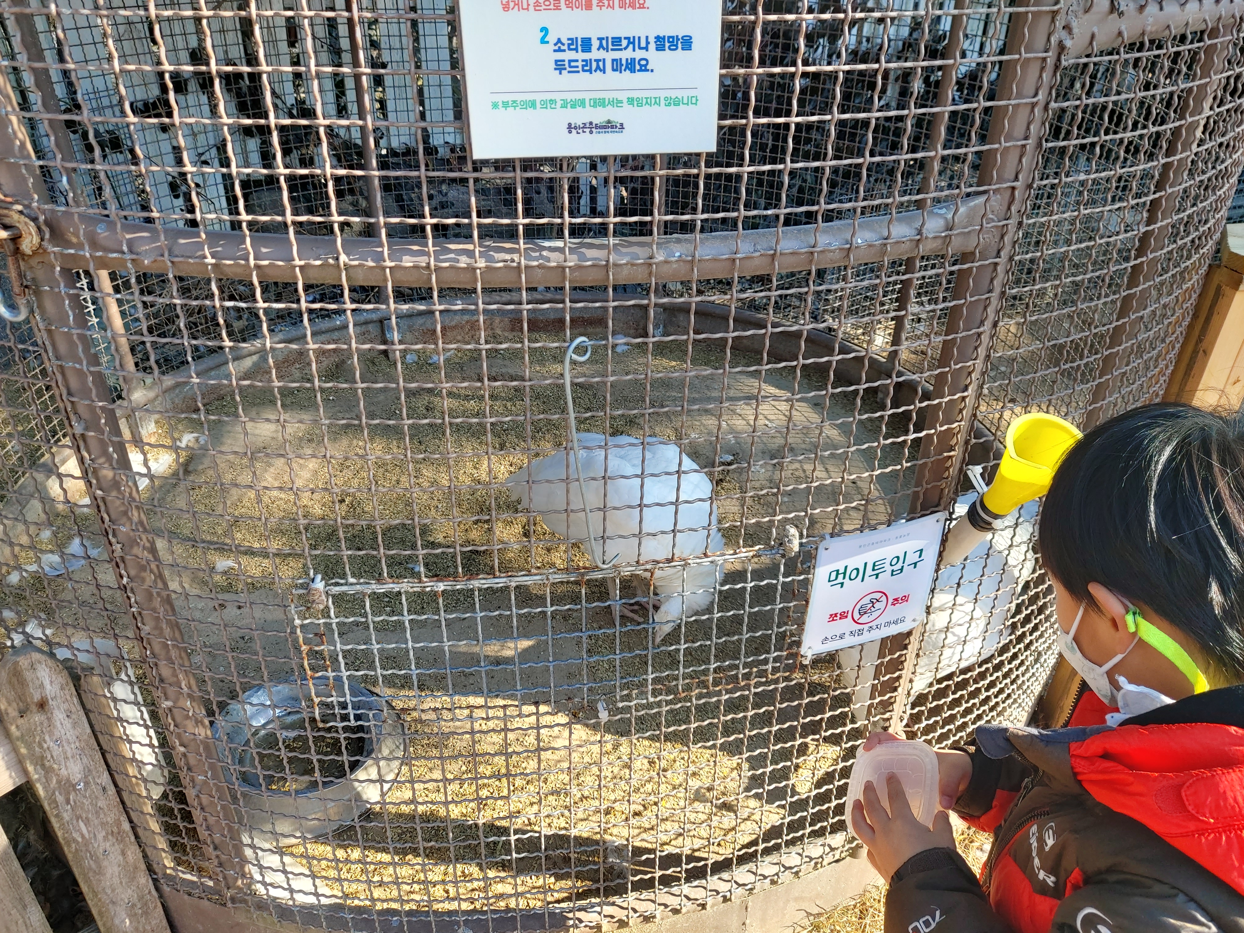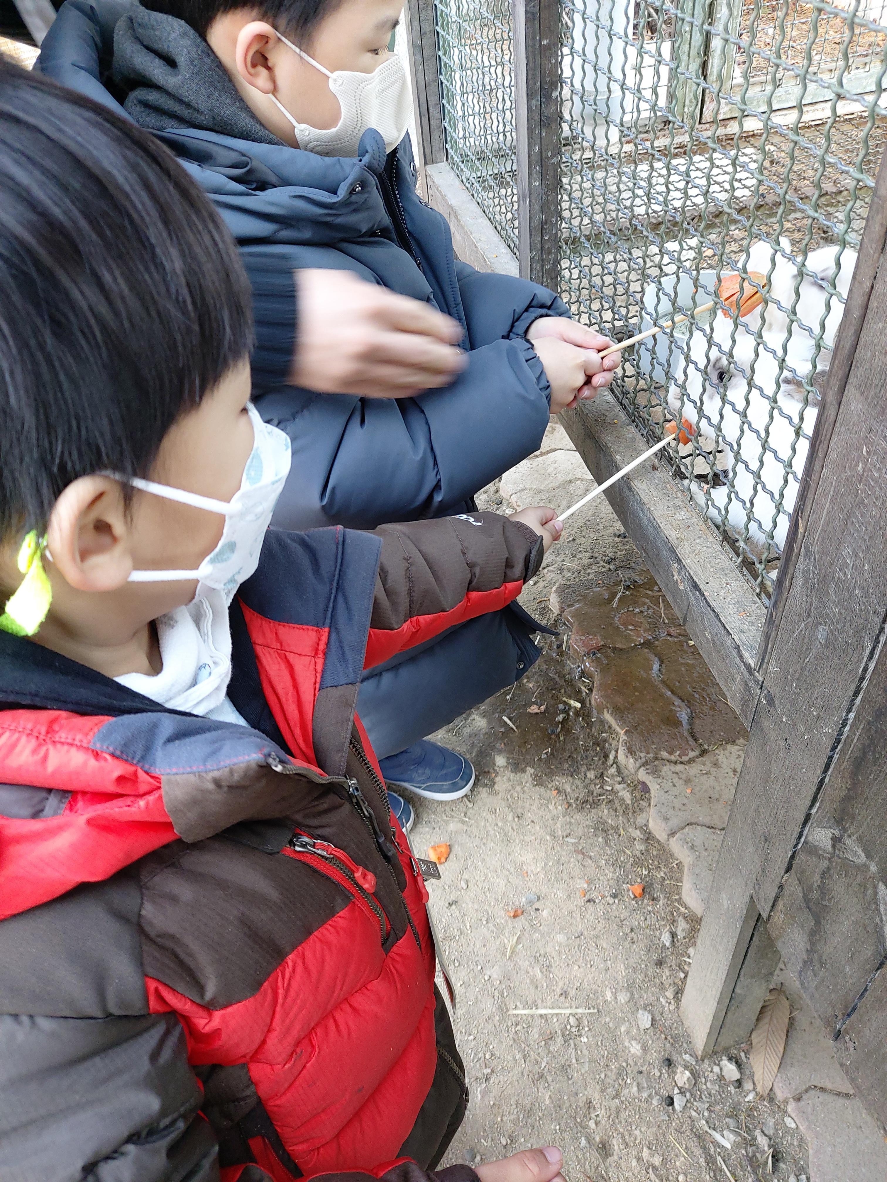 젓가락에 당근을 꽂아서 고사리 손으로 먹이를 주고있는 아이들이 참 귀엽습니다.