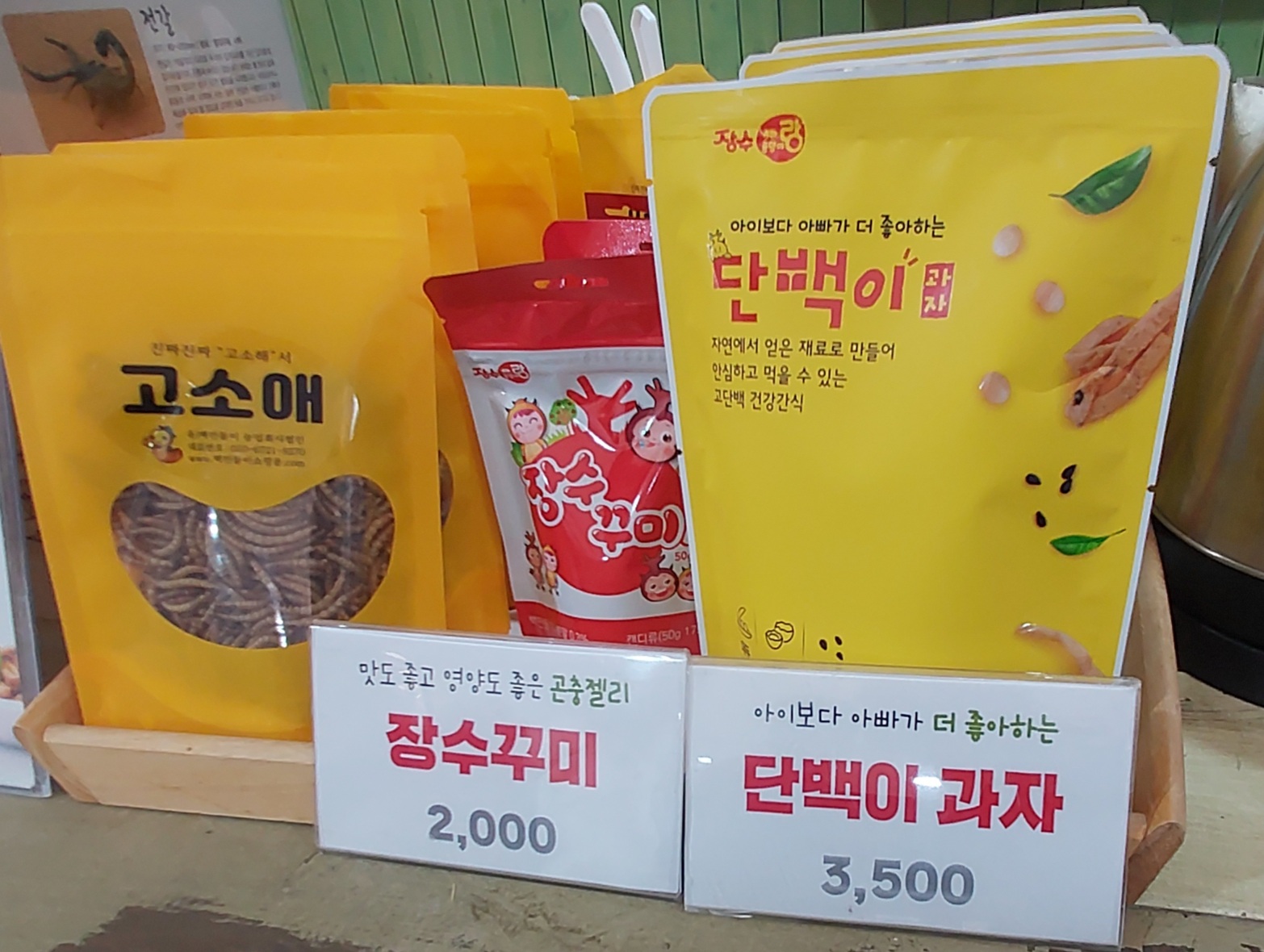 곤충생태체험관 한 켠에 애벌레 과자? 곤충 젤리를 팝니다.