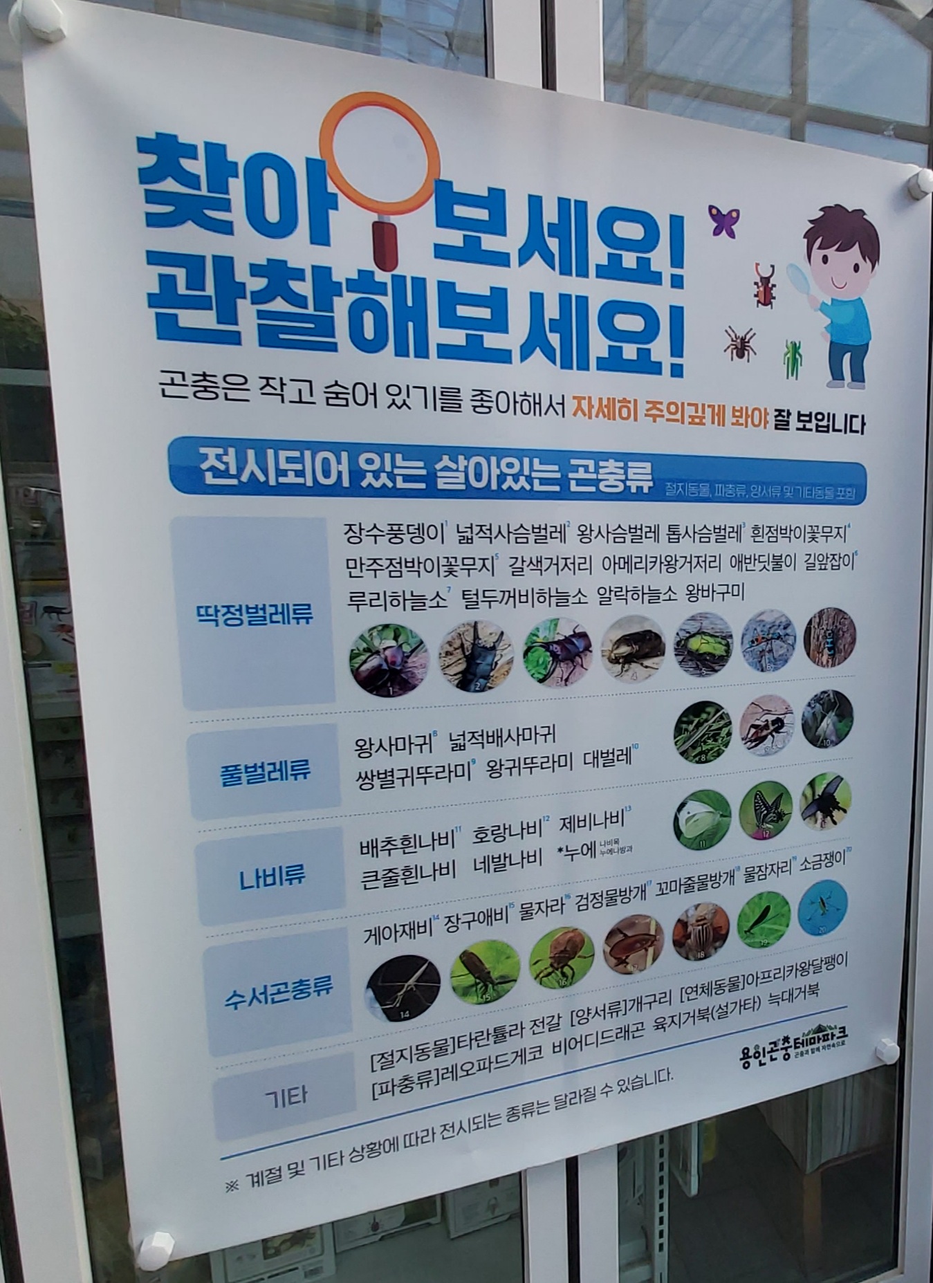 매표소 앞쪽에 전시되어 있는 곤충류가 소개되어 있습니다. 처음 들어보는 곤충류도 많네요.