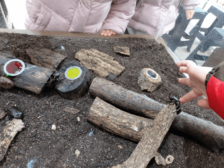 사슴벌레와 장수풍뎅이에 대해 엄청 자세히 배우고 난 후, 퀴즈도 풀어보고, 만지는 법도 배운 후, 아이들이 직접 만져봅니다.