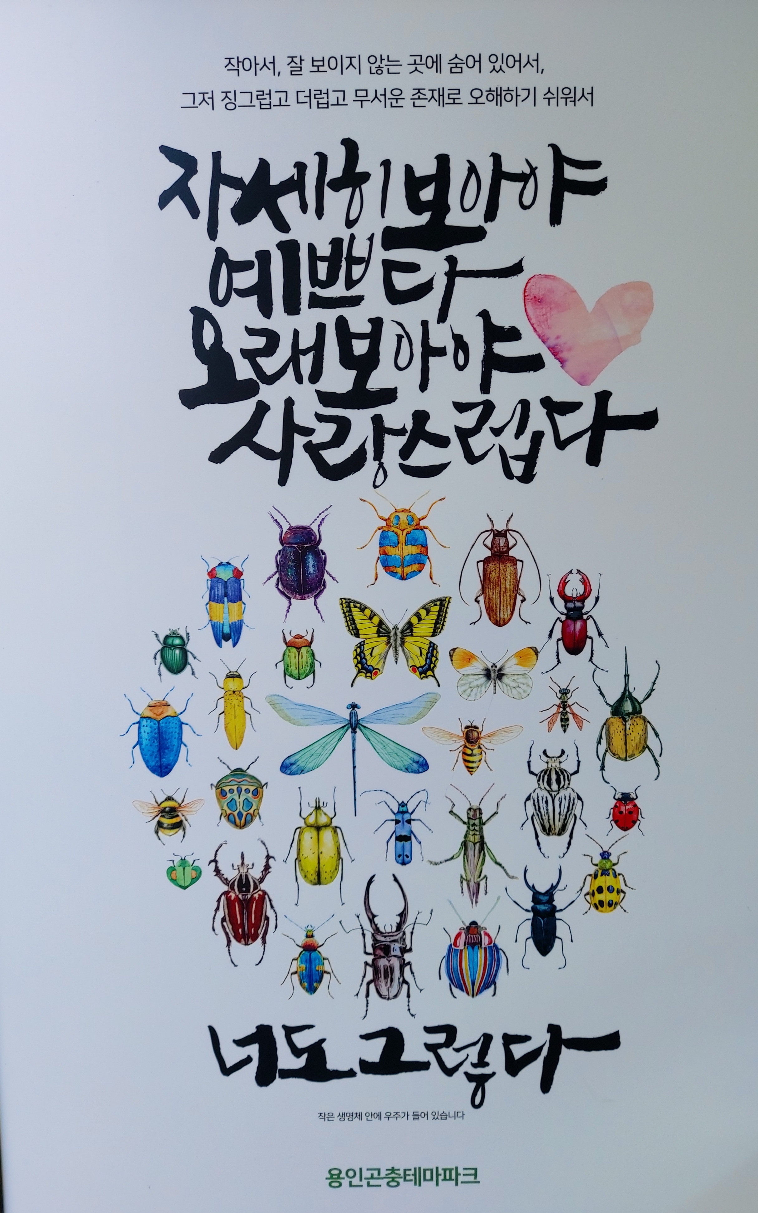 전시관 입구에 '자세히보아야 예쁘다, 오래보아야 사랑스럽다'라는 문구를 적절히 사용하고 있네요. 오늘 체험을 통해 정말 아이에게 곤충의 매력을 맘껏 전할 수 있었던 것 같습니다.
