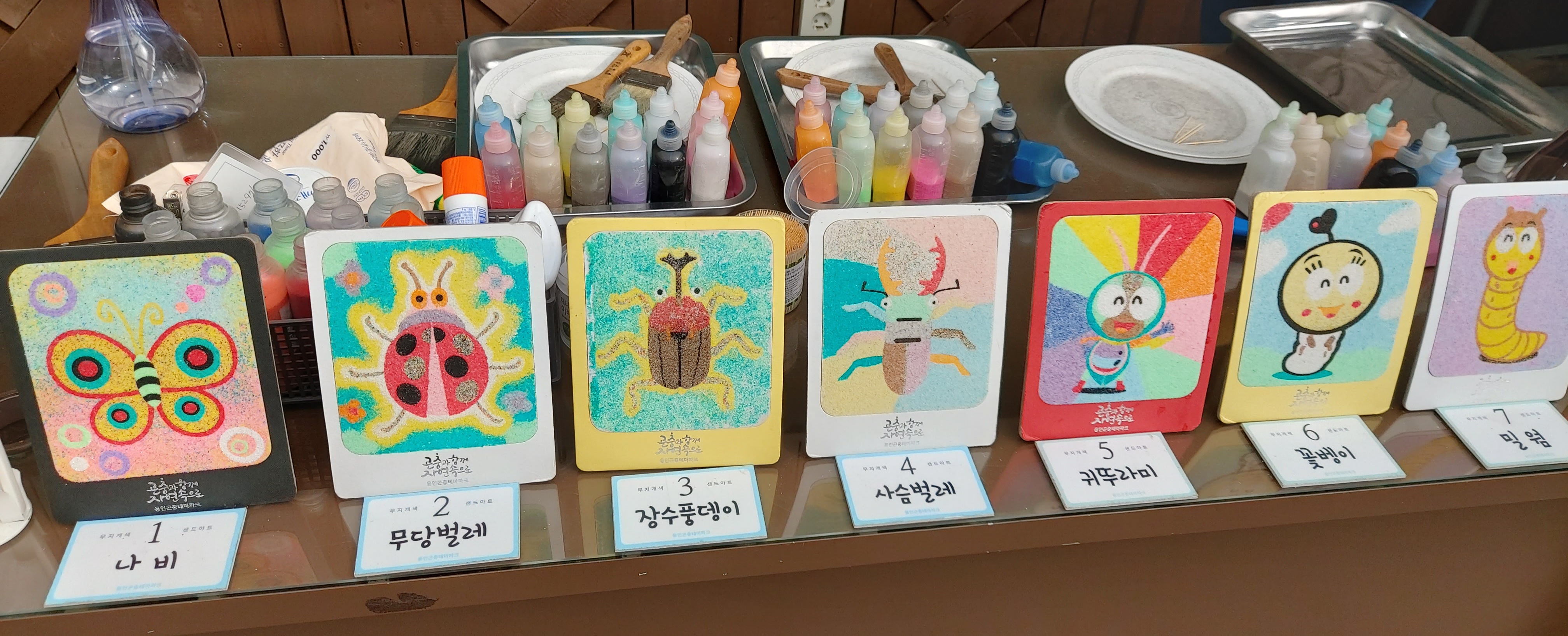 곤충을 다양한 컬러 모래를 이용하여 나만의 샌드아트로 완성해 보는 시간입니다.