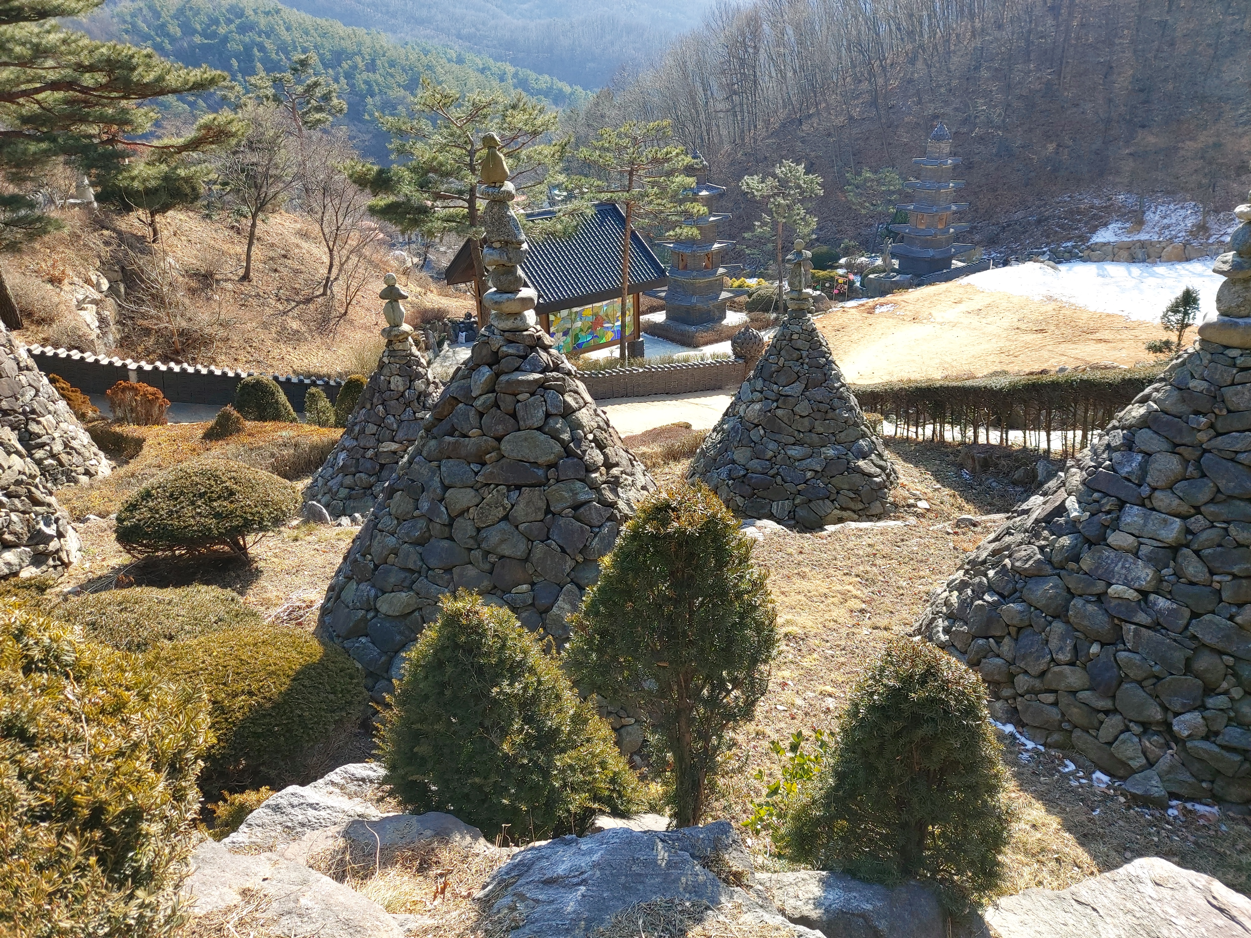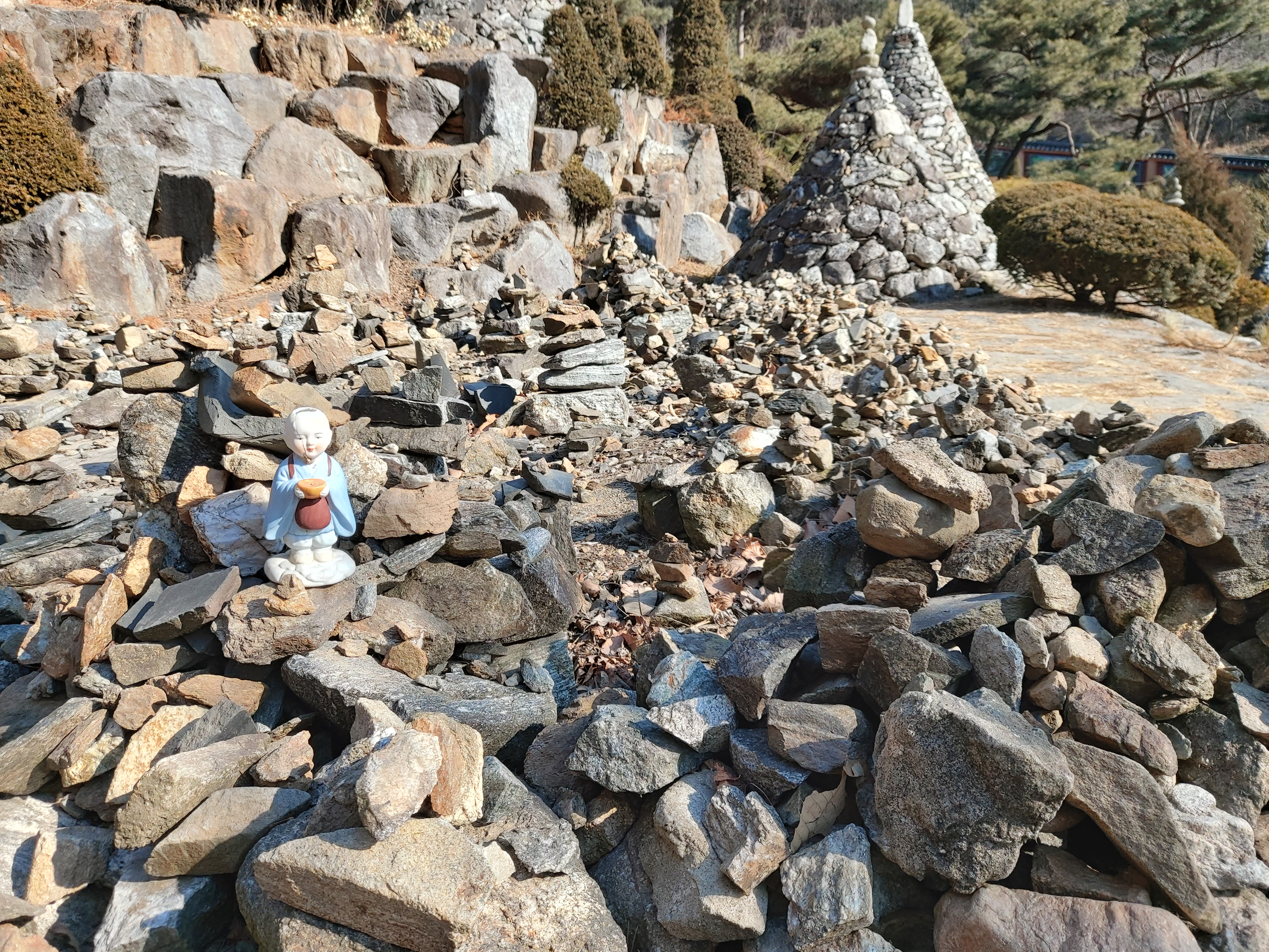 곳곳에 소원을 빌고자 쌓은 돌 풍경이 정겹습니다.
