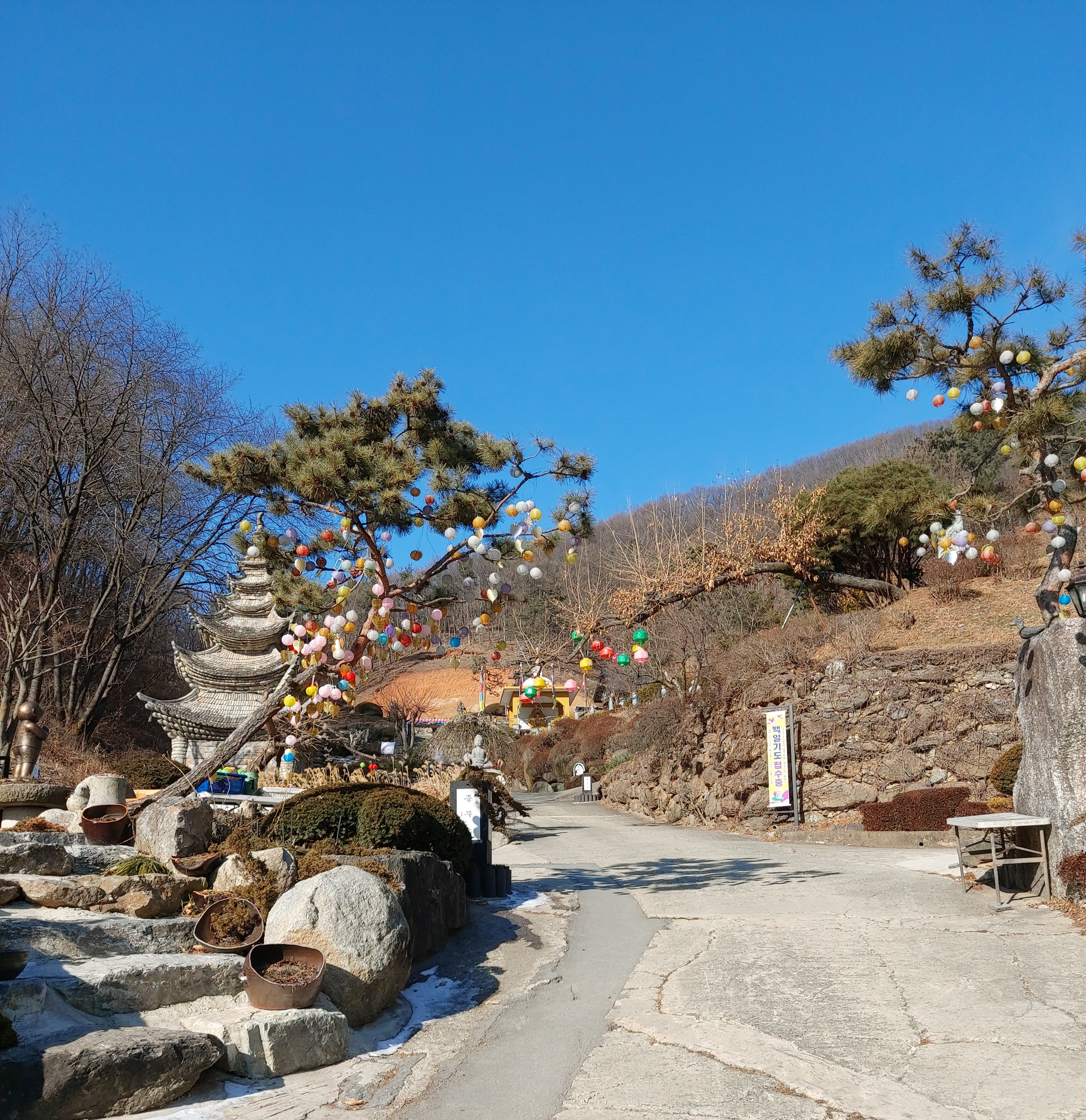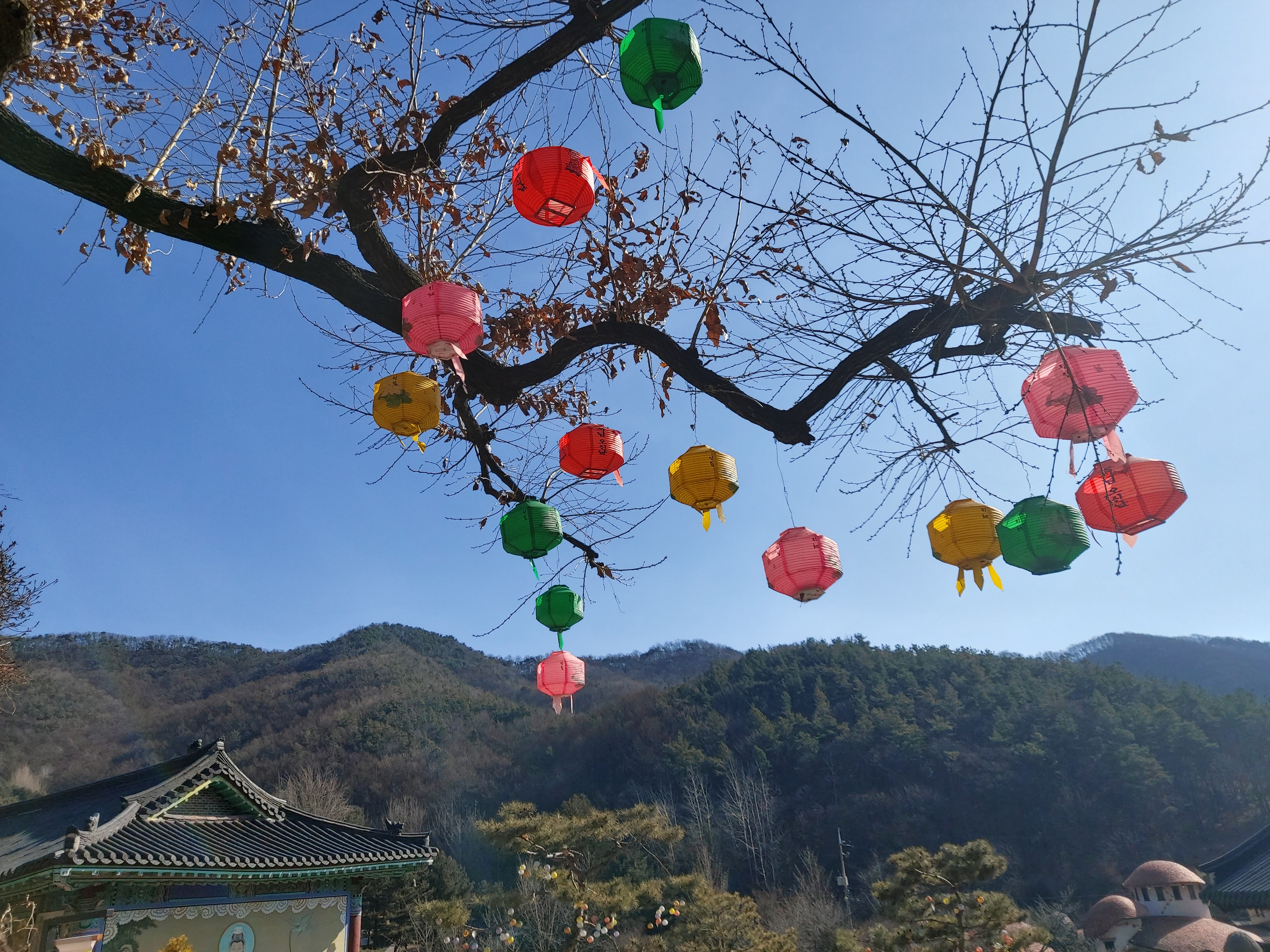 내려오는 길에 나무에 걸린 등이 너무 예뻐서 찍어 보았습니다. 겨울말고도 다른 계절에 와도 와우정사는 너무 예쁠 것 같아요.
