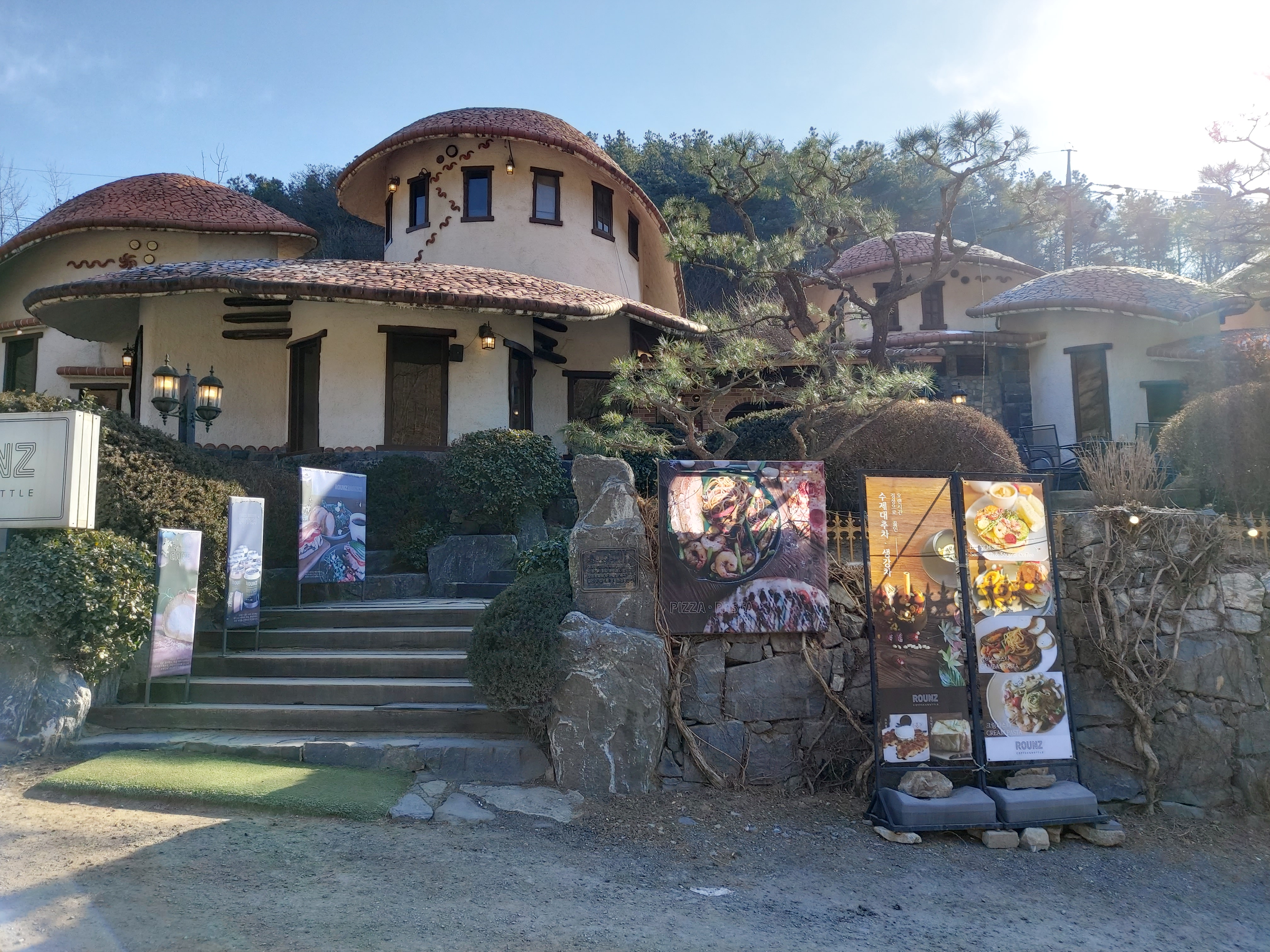 그리고 입구에 버섯 모양의 엄청 큰 규모의 음식점이 있던데, 상호명은 ROUNZ로 파스타, 버거 같은 양식을 파는 음식점이었습니다.