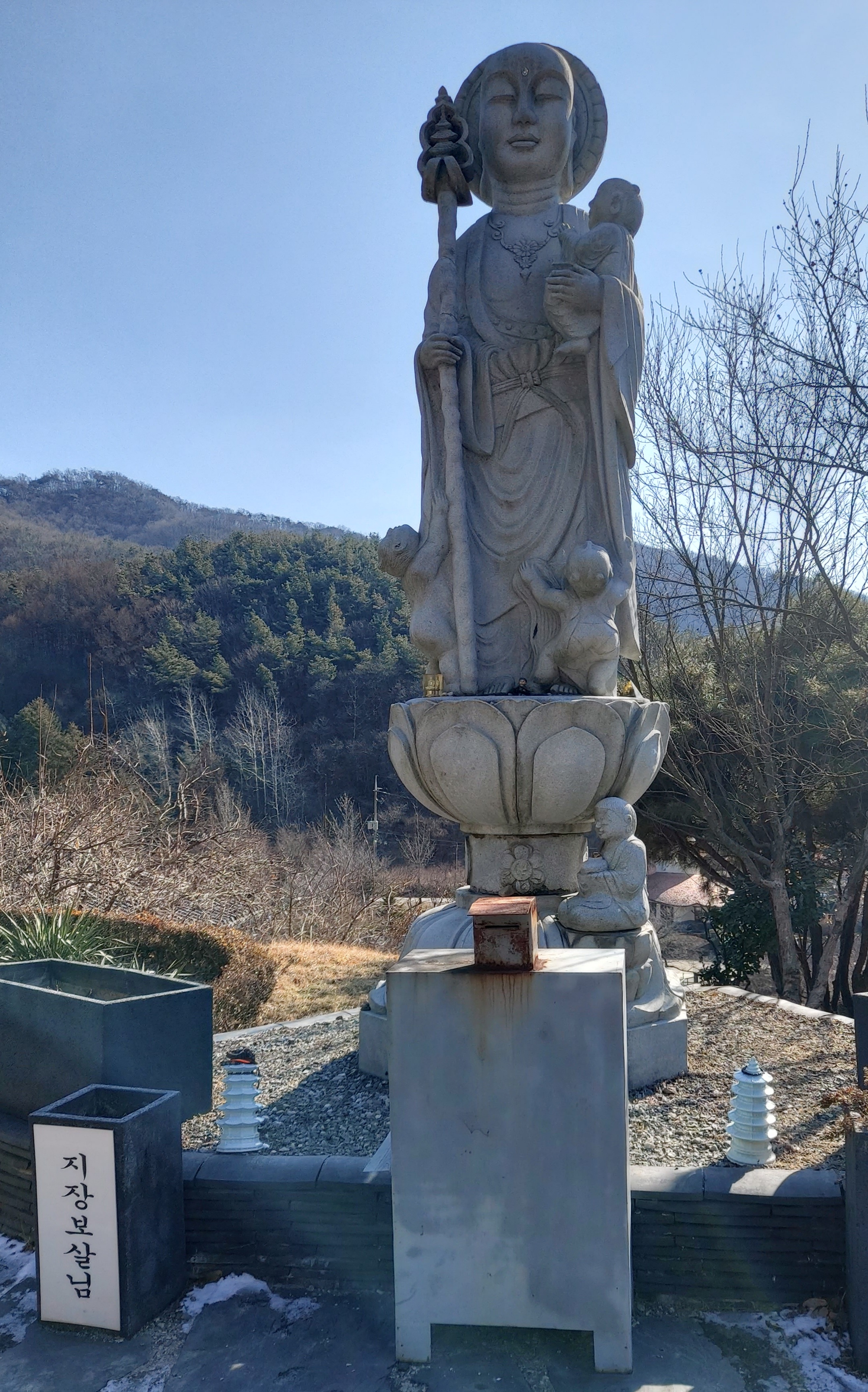 지장보살님의 모습입니다. 보살님 곁에 여러 사람이 매달린 형상이 왜그런지 궁금했는데, 검색을 해보니 지장보살은 지옥에서 고통받는 중생들을 구원하기 위하여 지옥에 몸소 들어가 죄지은 중생들을 교화, 구제하는 지옥세계의 부처님으로 신앙받는다고 나오네요. 좀 이해가 되는것 같습니다.