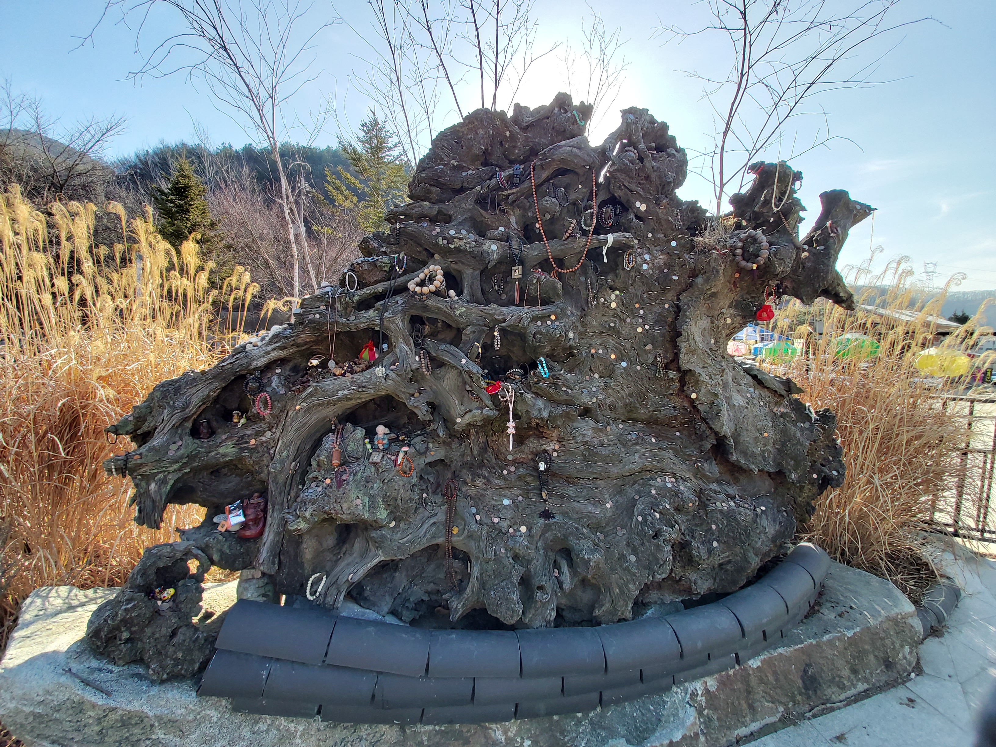 불두를 지나 가볍게 등산할 만한 입구가 나옵니다. 입구 쪽에 소원 동전을 던지기 위한 곳이 있는데, 제법 많은 동전들이 보입니다. 저기서 우리 아들 신나서 1000원은 쓴 것 같습니다. 가실 때 미리 10원짜리 여러개 준비하셔요.