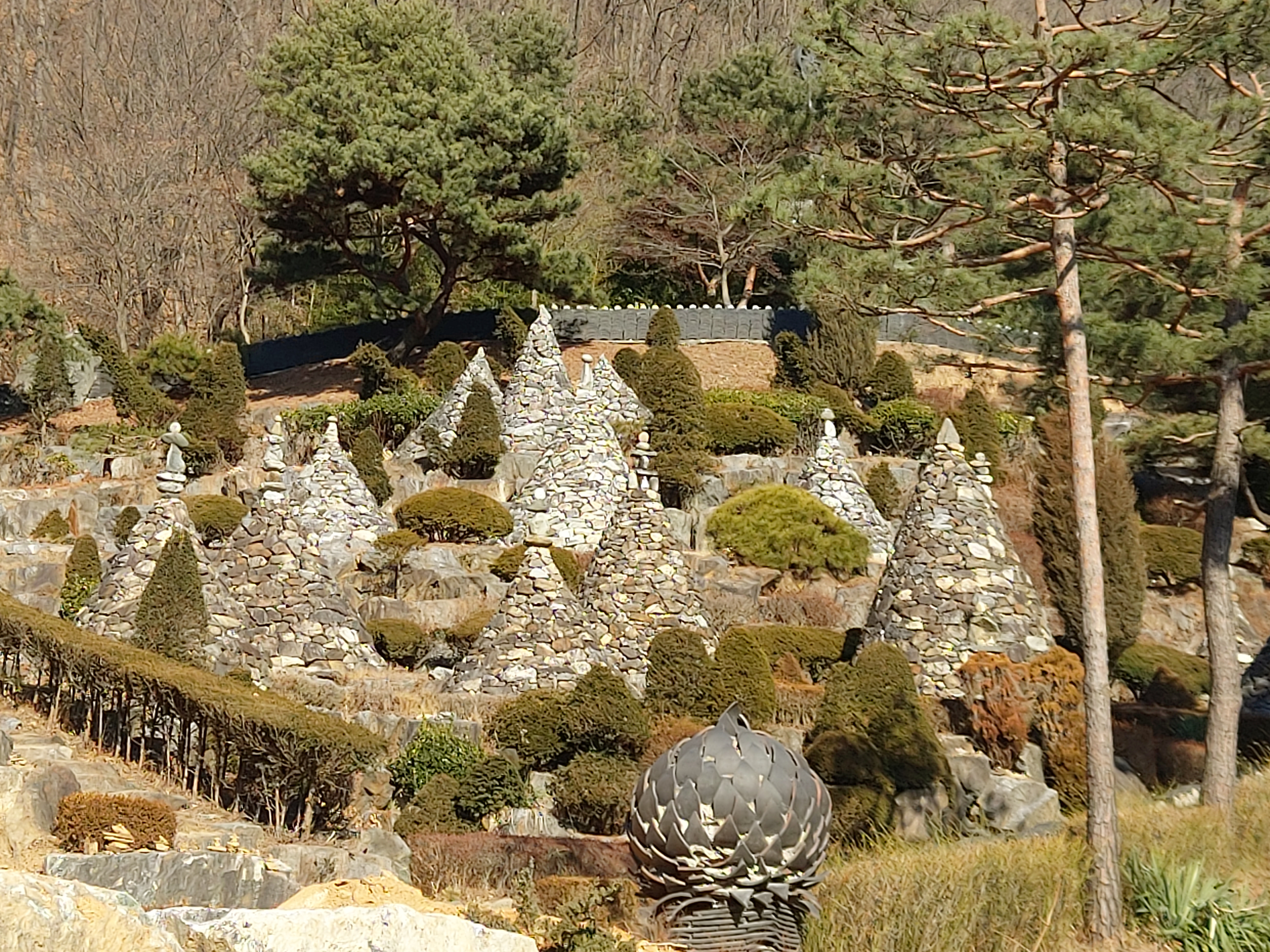 옛날 마니산에서 보았던 석탑? 돌산?이 보이네요. 바람에도 끄떡없는 것이 정말 신기해요.