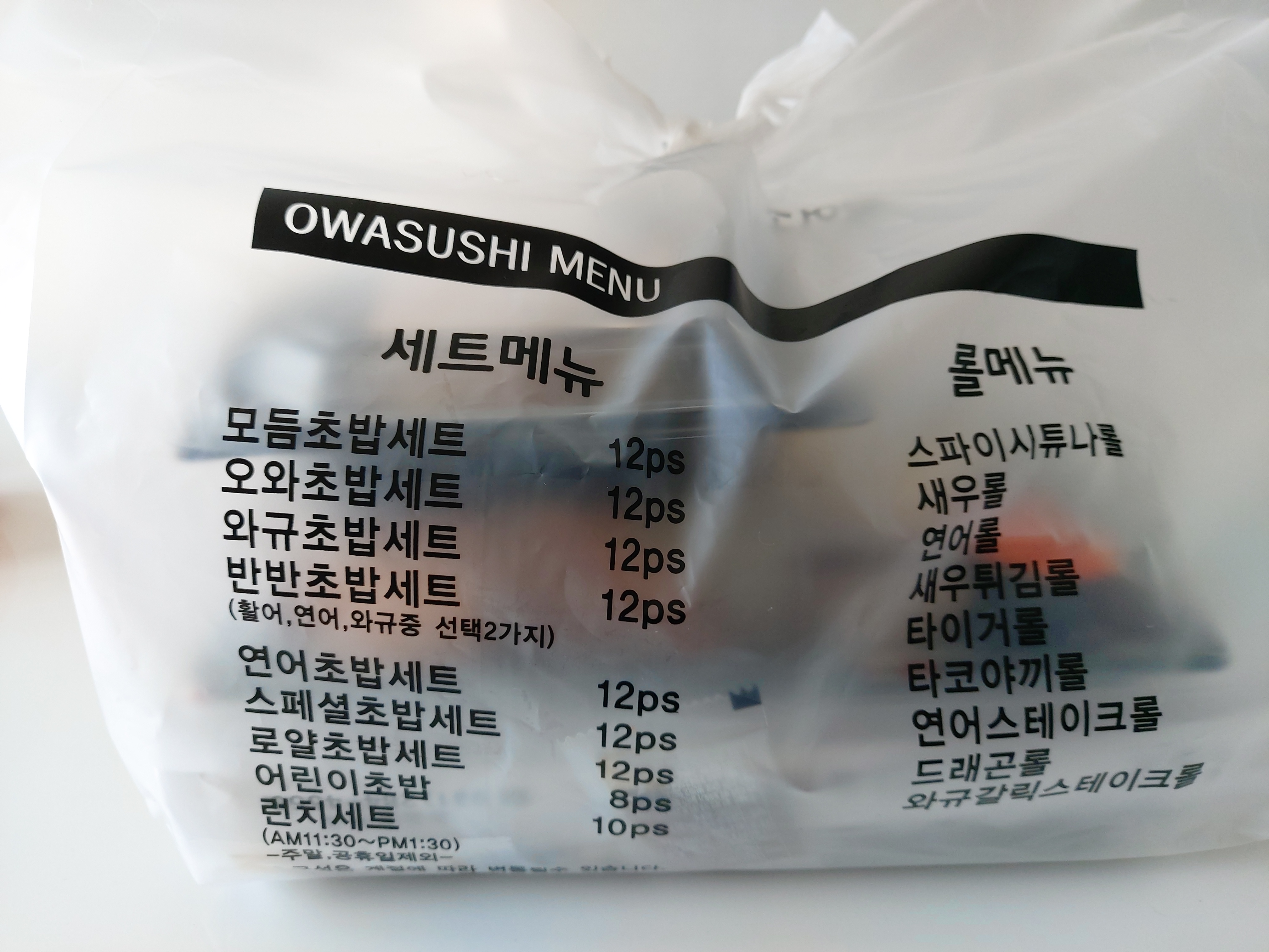 런치 메뉴입니다. 하절기에는 30~40분 이내, 동절기는 1시간 이내로 먹으라고 안내가 나와있네요.