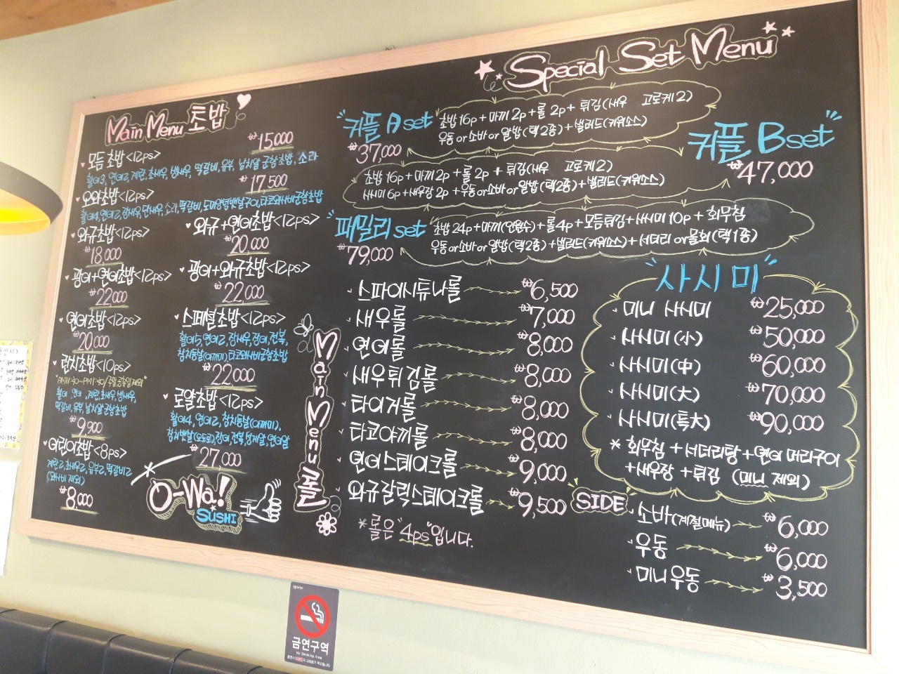 오와스시는 활어초밥전문점입니다. 여기는 평일 점심도 줄서더라고요.