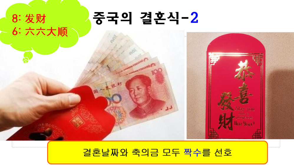 3. 한국의 함과는 반대로 신랑 측이 홍빠오(돈봉투) 거래를 통해