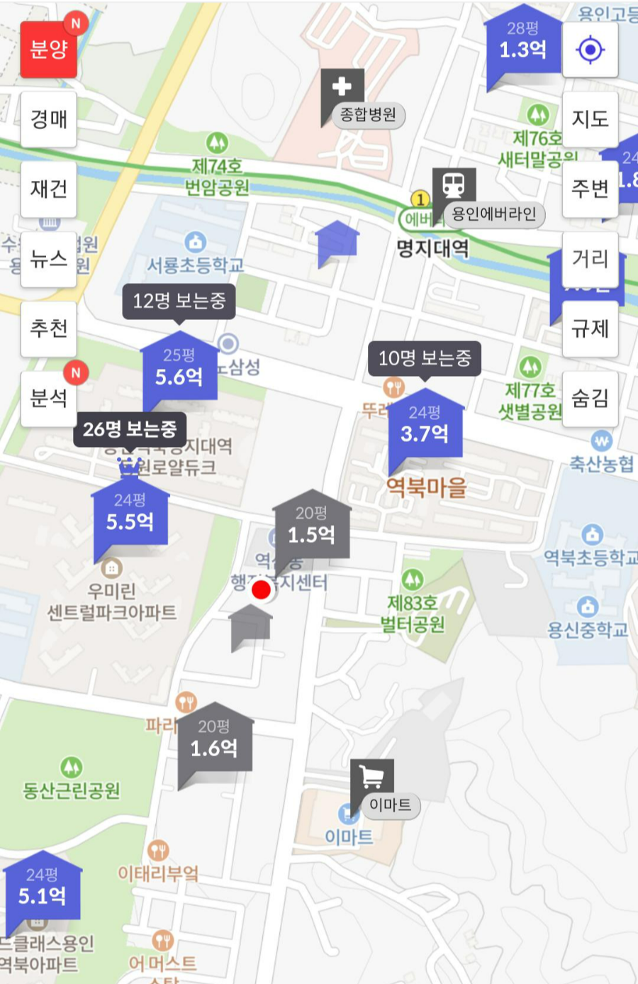 용인세브란스 종합병원 1분거리, 이마트 2분거리, 명지대역 도보 6분