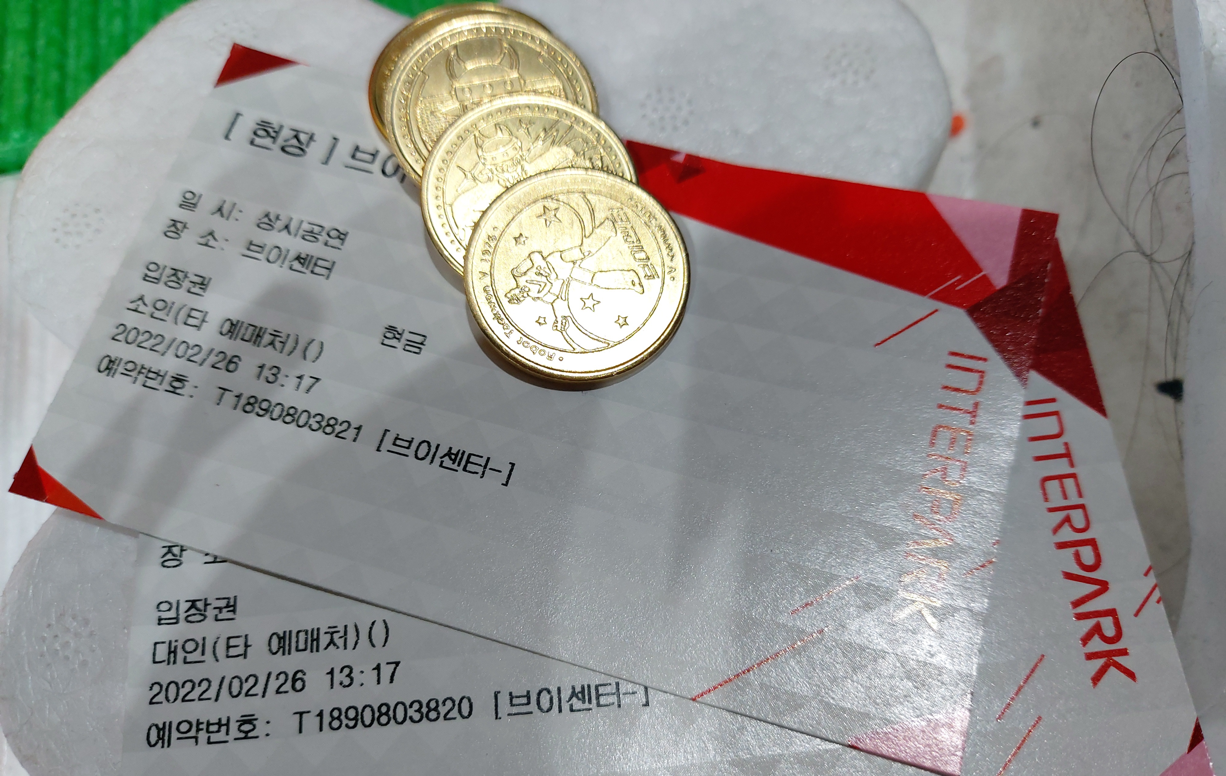 티켓과 함께 동전 같은 것을 줍니다.