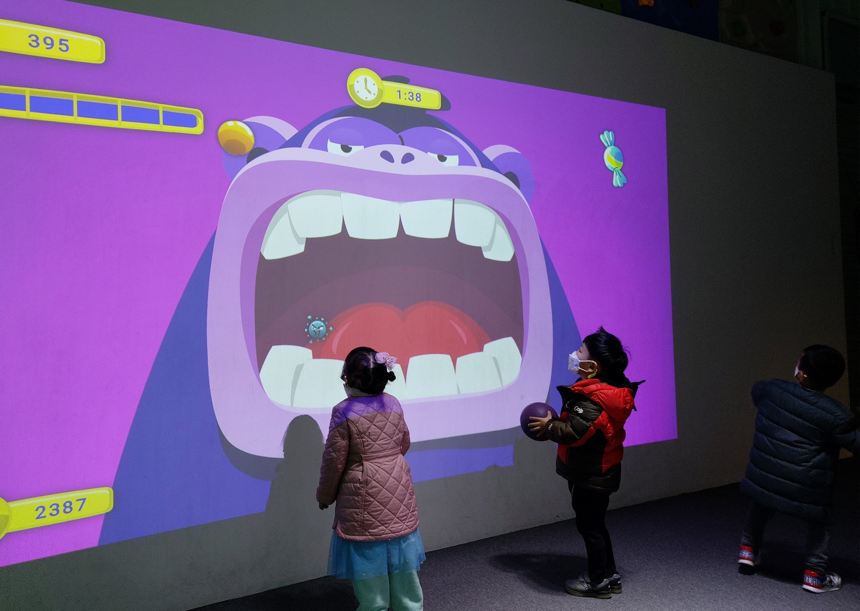 볼을 던져 스크린을 맞추는 게임이 설치되어 있습니다.