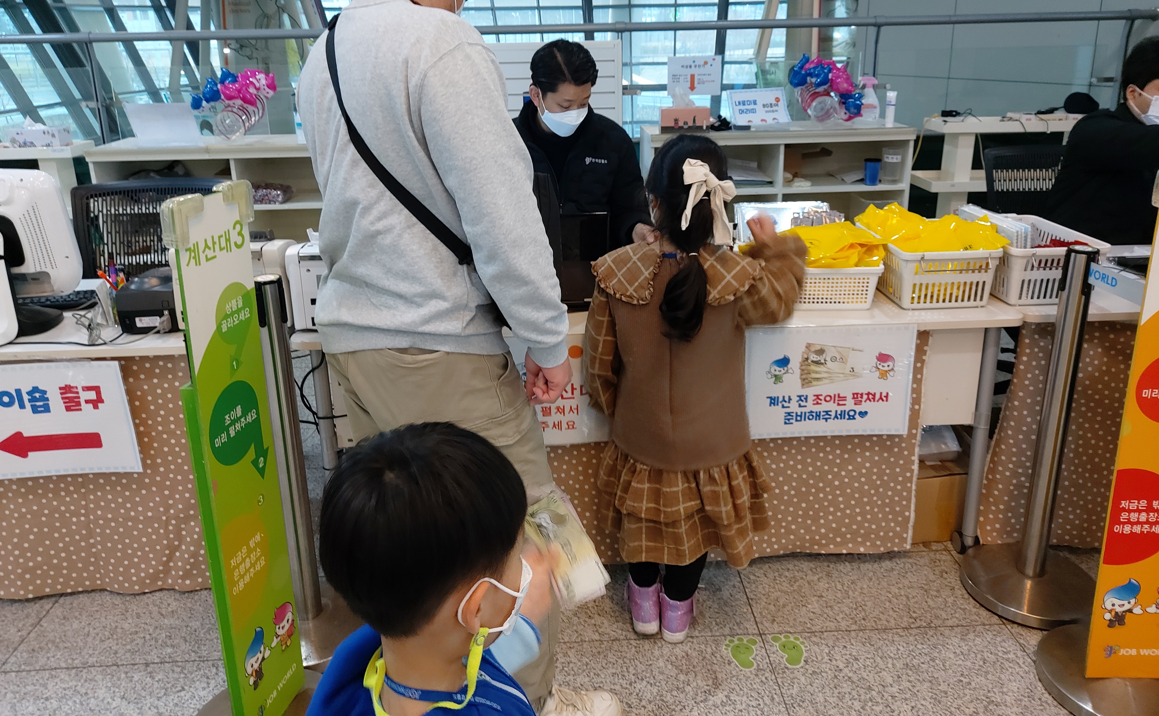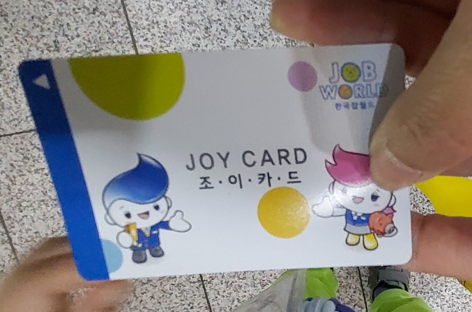 입장순서가 적힌 티켓, 조이(어린이체험관에서 사용하는 화폐)를 줍니다.
