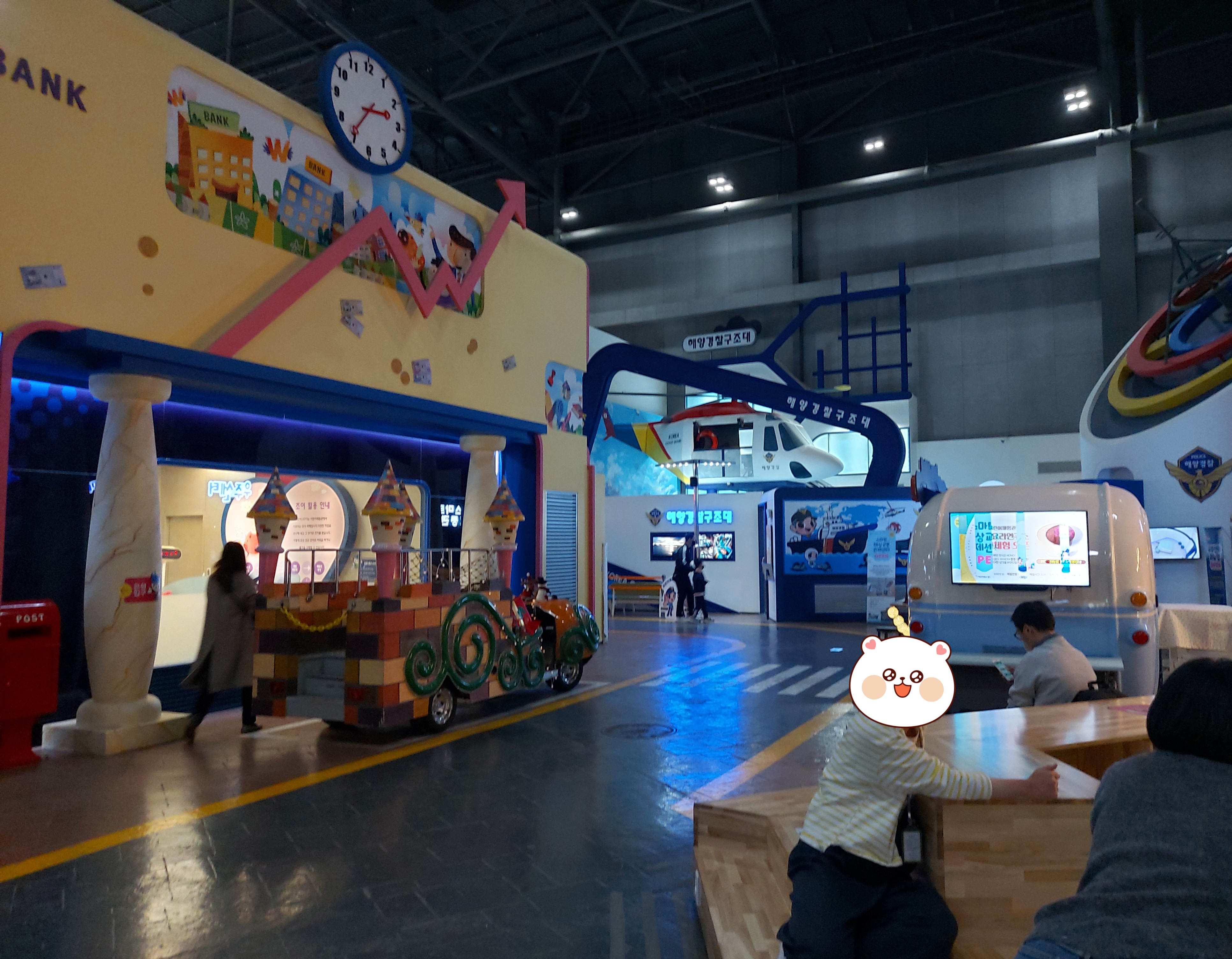 여러가지 직업 체험관이 눈길을 사로잡습니다.
