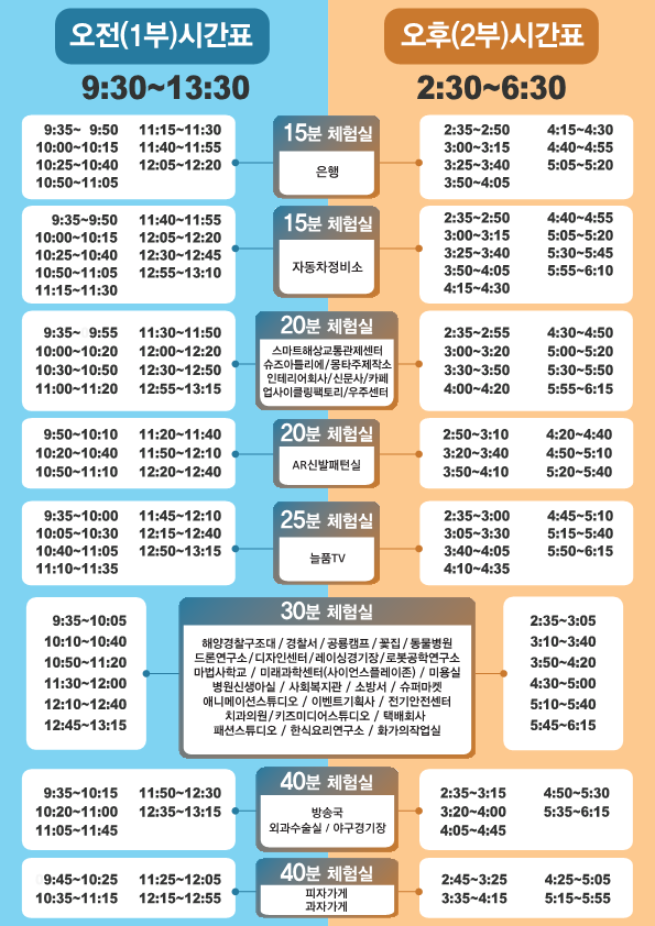 보호자분들은 우선 체험관별 시간대를 확인하셔서