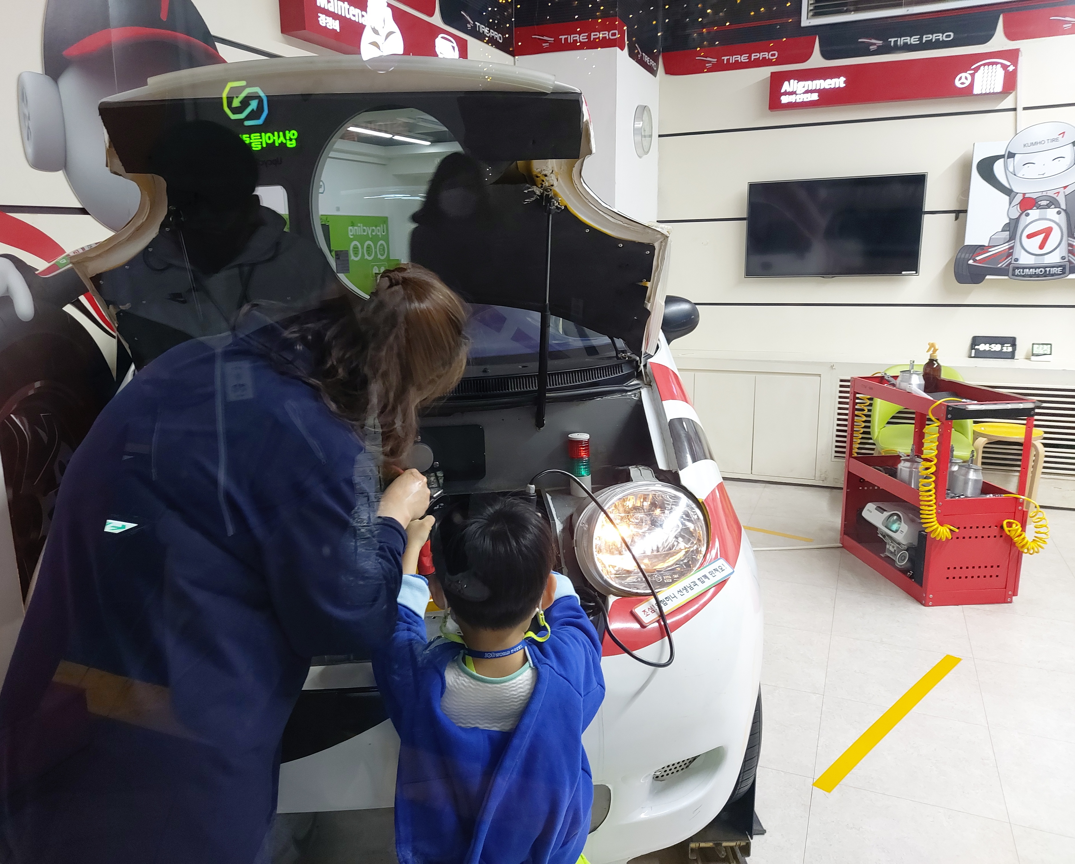 그리고 곧바로 자동차정비소에서 자동차 정비에 관한 교육을 받습니다.