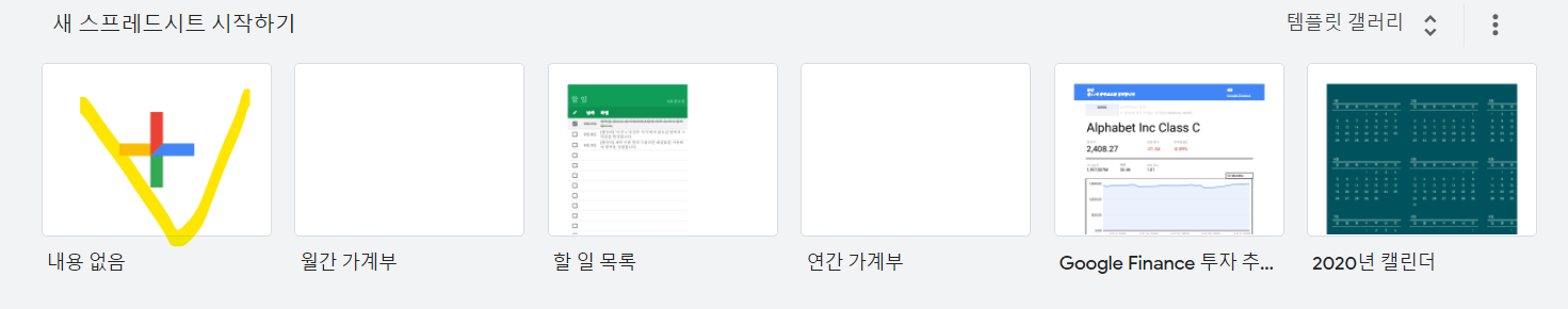 3. 원하는 스프레드시트 양식을 클릭해주세요.