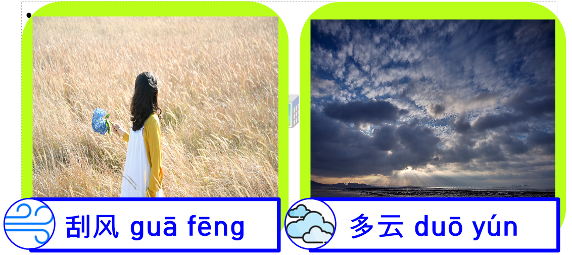 '뚜어 윈(多云)'은 구름이 많이끼는 것입니다. 그리고 '칭(晴)'은 '맑다'라는 의미입니다.
