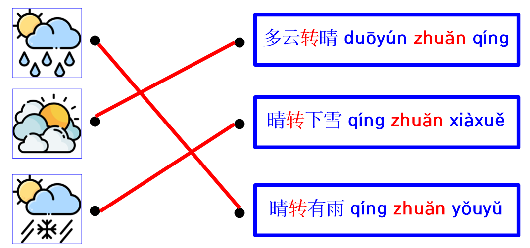 '전(转)'자를 중간에 두고 서로 다른 날씨의 변화가 발생합니다.
