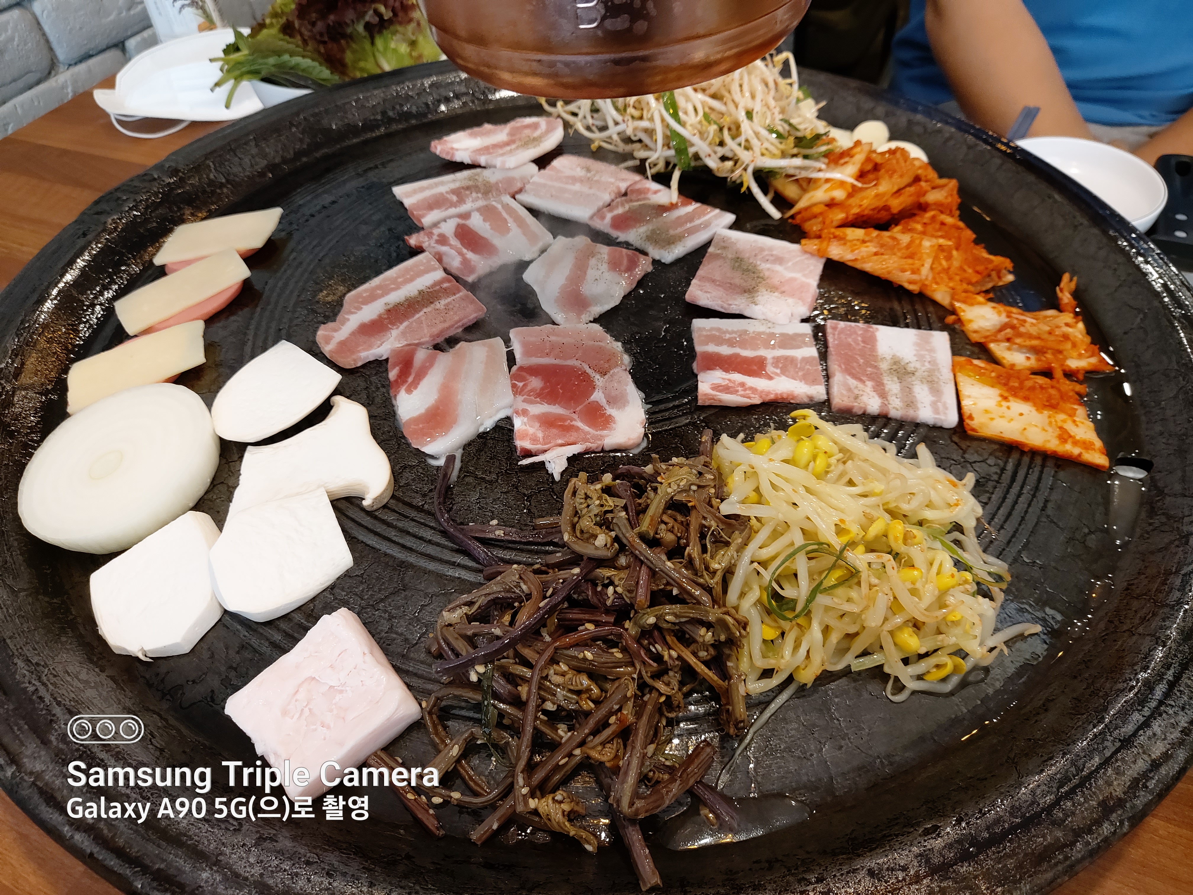 무쇠삼겹은 야채가 굉장히 다양합니다.