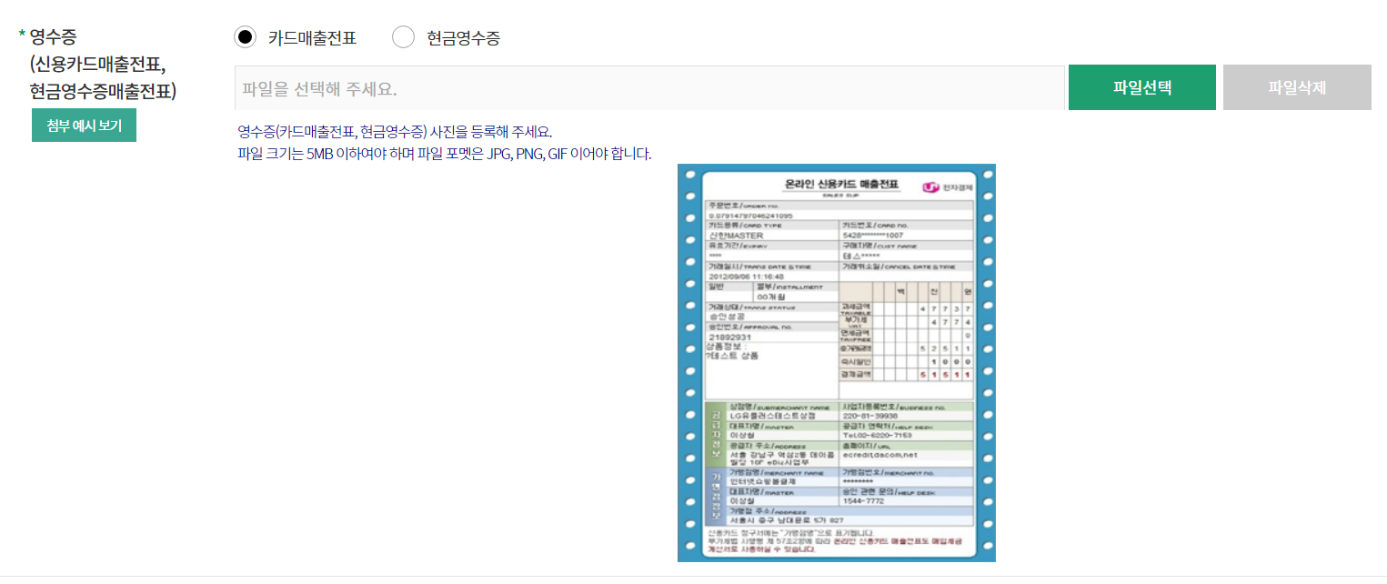 저는 카드사 어플에서 거래 내역 캡처해서 첨부했습니다.