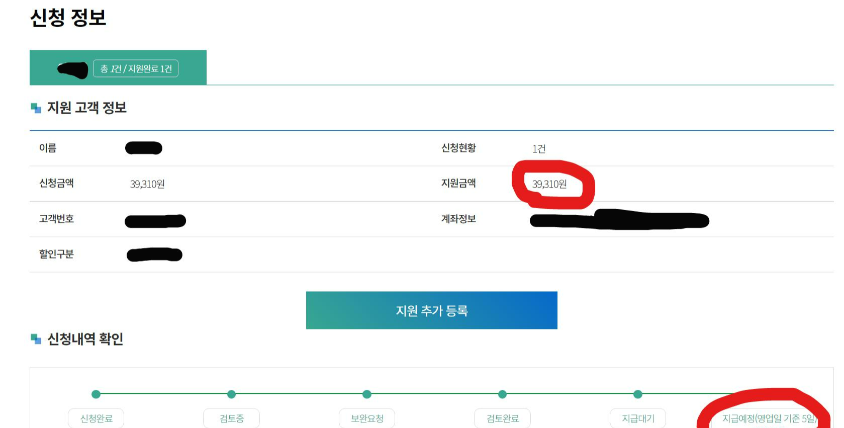4. 지원 대상이시라면 아래의 절차대로 차근차근 입력하시면 됩니다. (회원가입, 대상자 확인, 계좌등록)