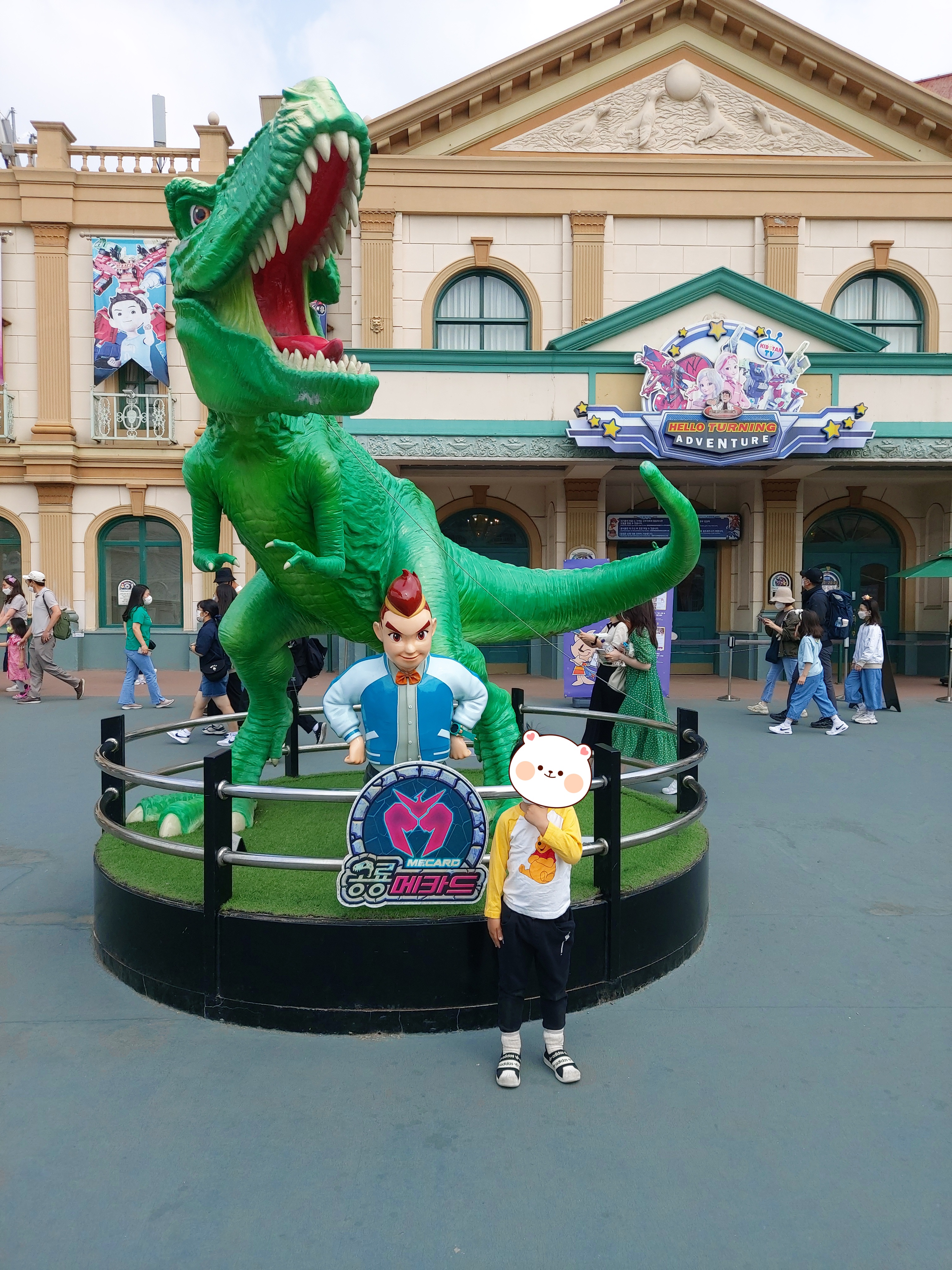 공룡을 좋아하는 아들은 공룡 앞에서 포즈를 취하고 사진을 찍어달라고 요청합니다. ㅎㅎ