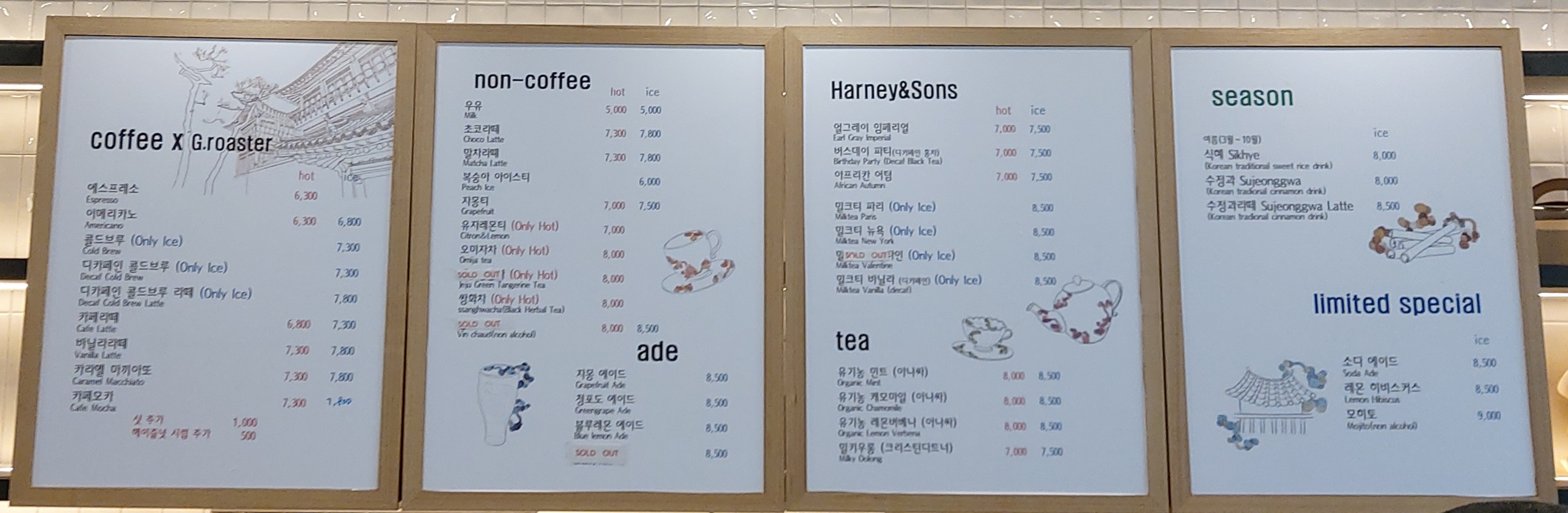 음료가격입니다.