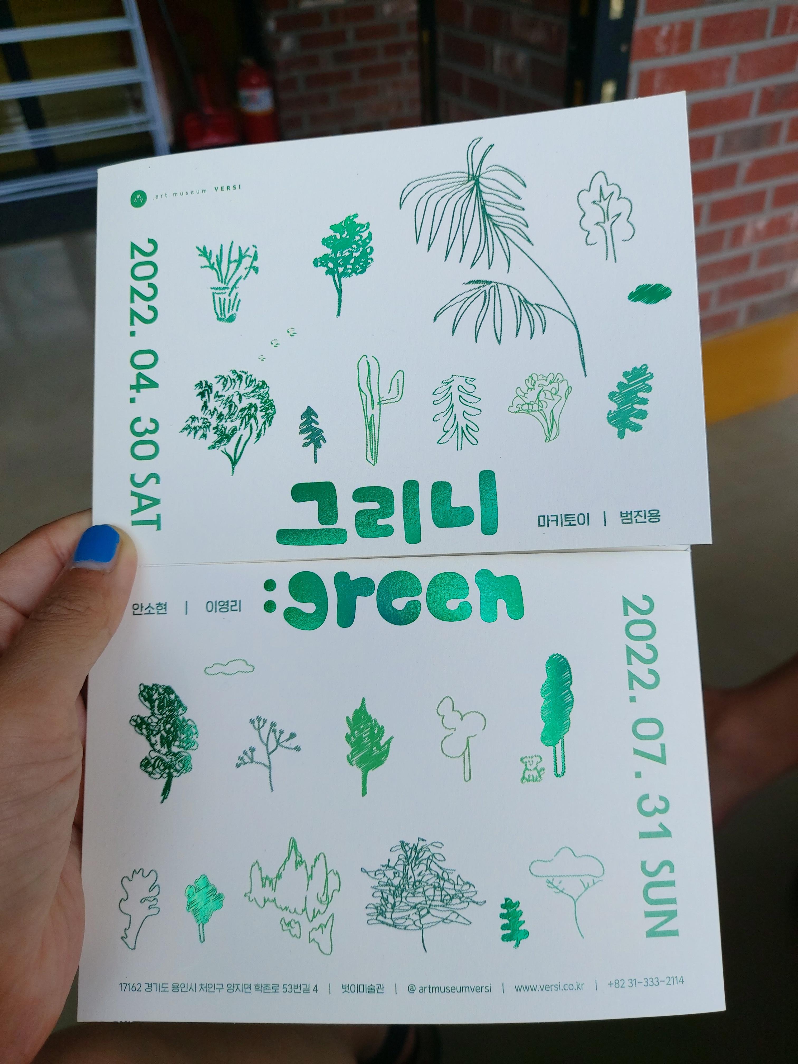 이번 전시 그리니 :green은 어린아이의 말장난 같은 중의적인 의미를 담고 있습니다.