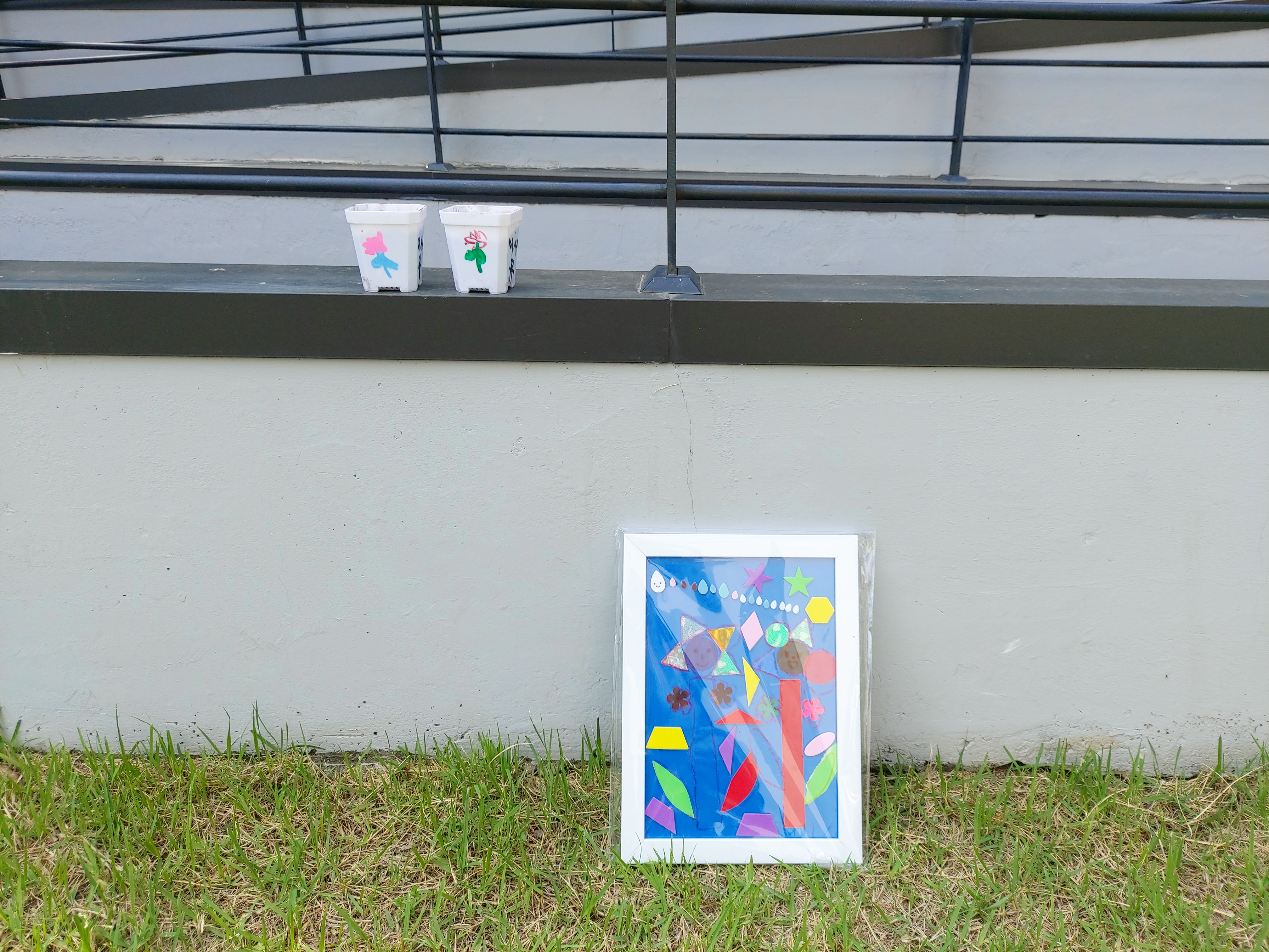 싹둑싹둑 페인팅 작품과 화분들을 한 켠에 놓고 사진을 찍어봅니다.
