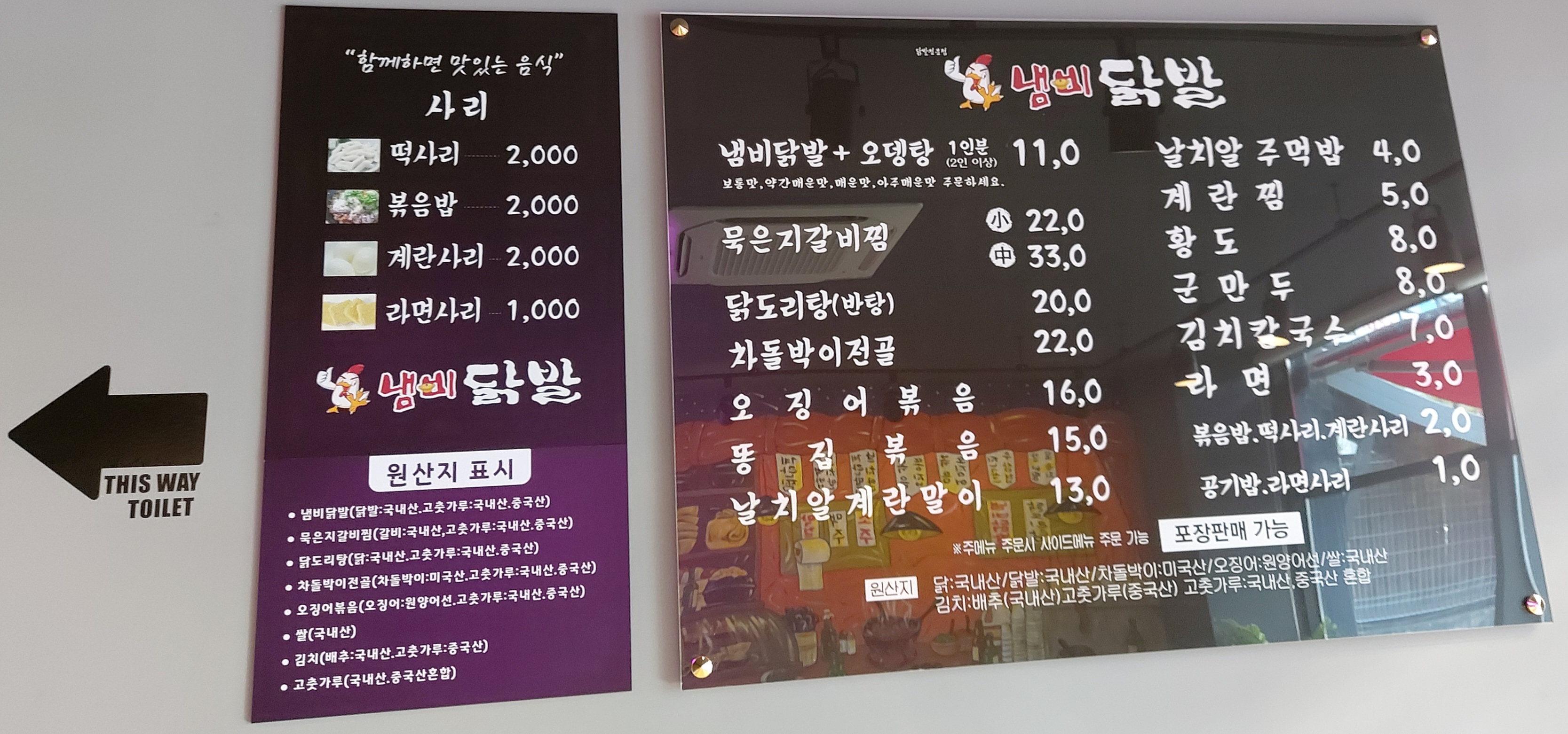 냄비닭발 동백점 가게 내부를 보시겠습니다.