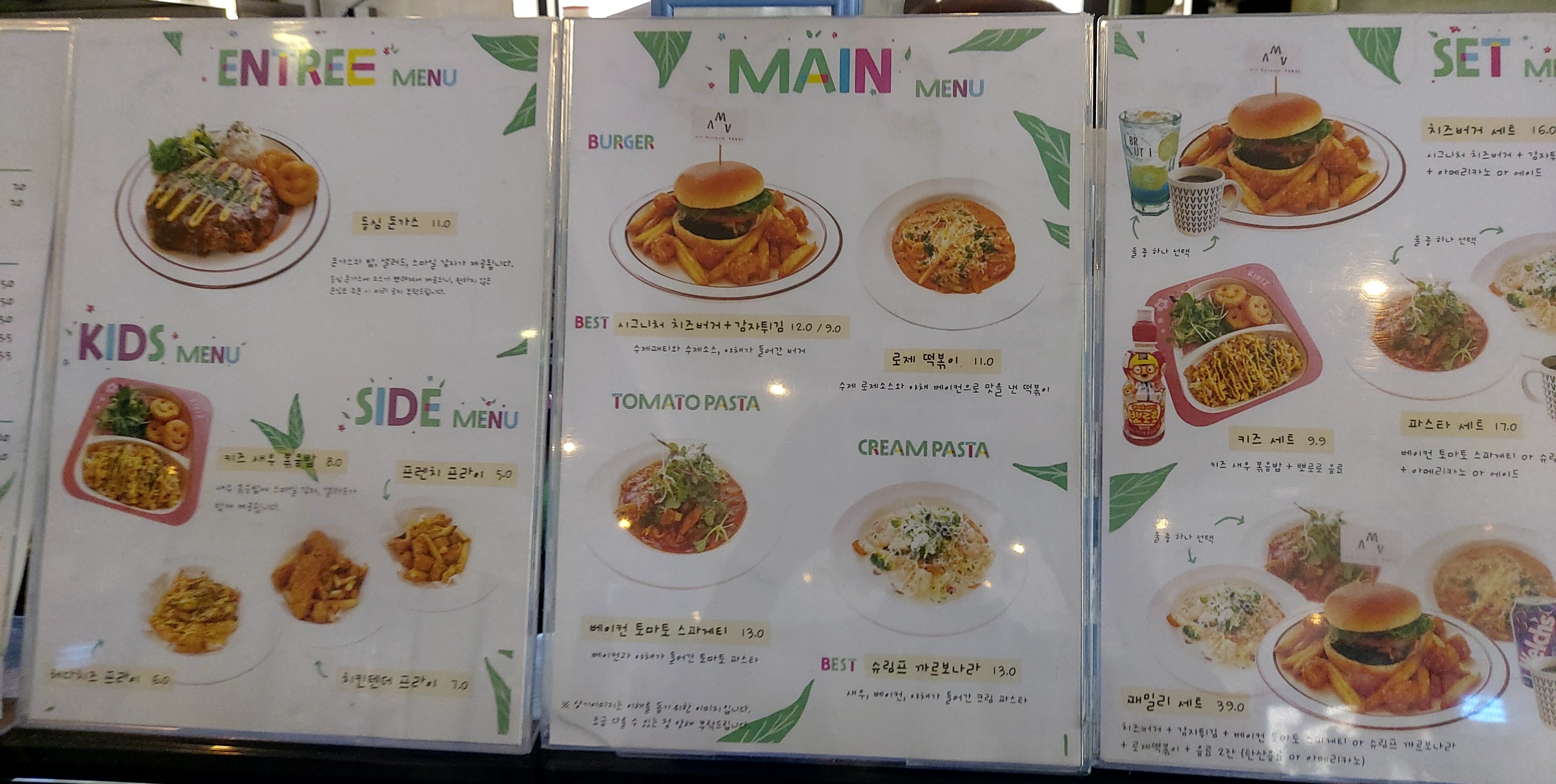 버거 종류부터 스팍게티, 등심돈까스, 키즈 새우볶음밥, 떡볶이, 프라이, 세트 메뉴 등 생각보다 메뉴가 다양합니다.
