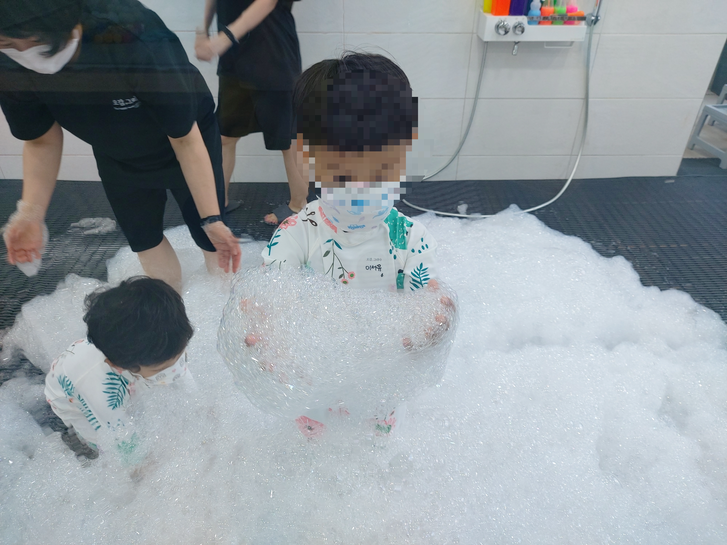 입실-환복-메이크업놀이(10분)-드로잉 퍼포먼스(10분)-버블놀이(15분)-수영장 물놀이(25분)-샤워